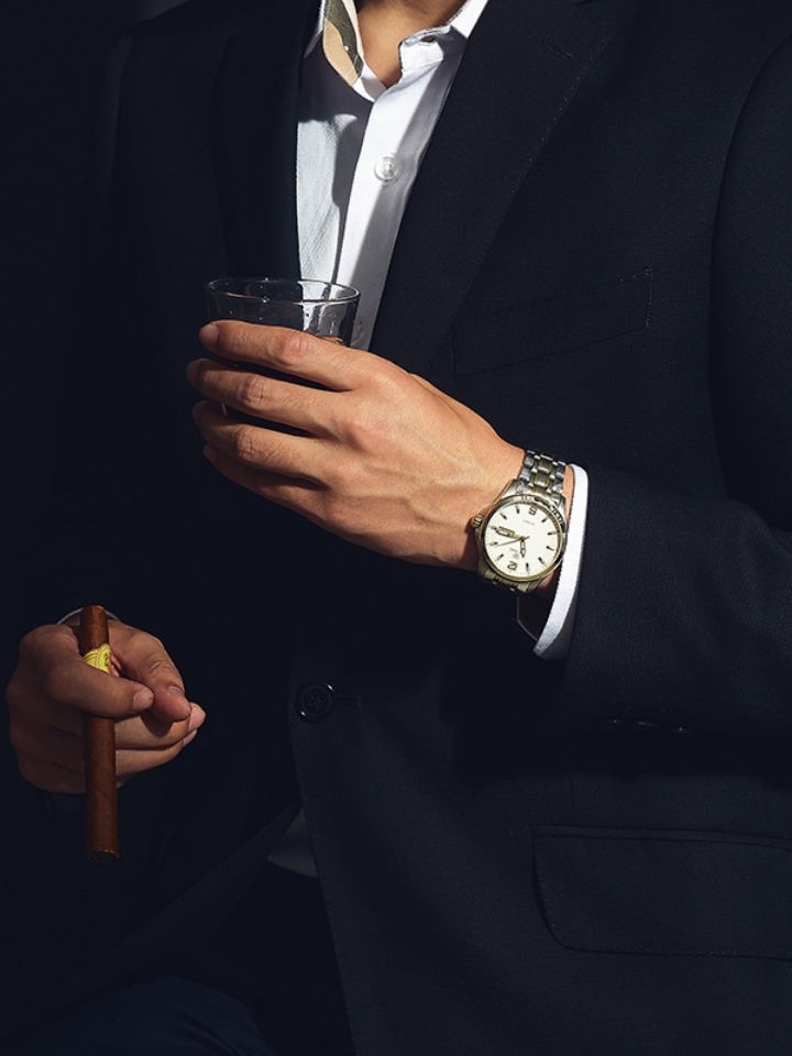 这款合成的蓝宝石的表镜,防划性、抗震性、密封性能优异。搭配深色系裤装打造时尚高阶look。n