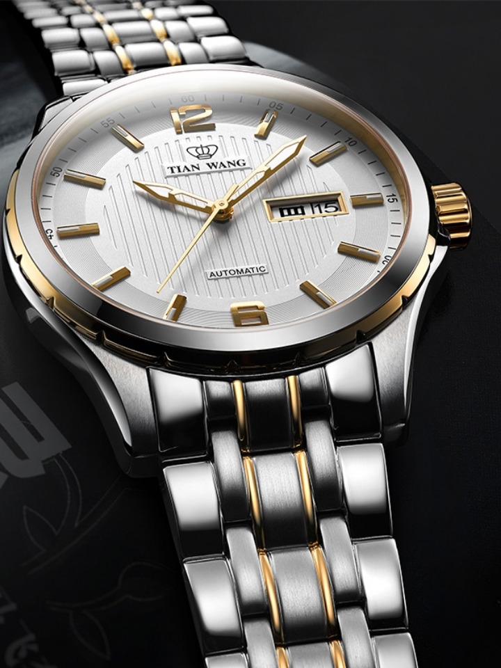 合成蓝宝石的表镜材质选择,耐磨防刮又清晰透亮。精钢表带的加入,可以随意的翻折,线条流畅又光滑。镂空的底盖采用矿物质玻璃打造,精美机芯一览无余搭配上全自动上链机芯,走时准备又能起到防水效果!