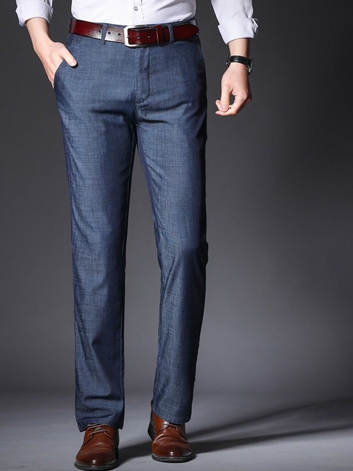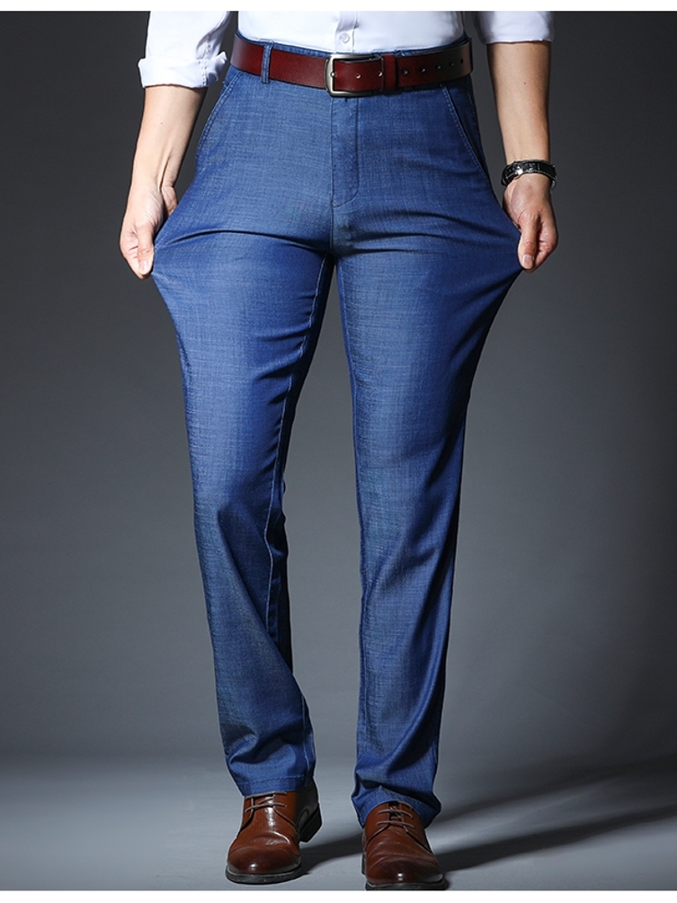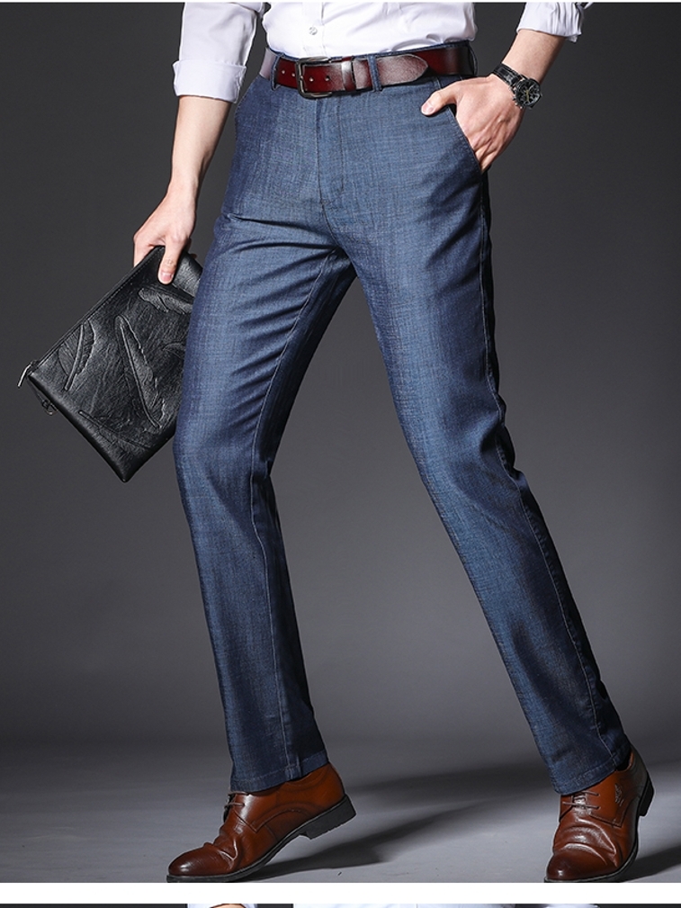 这款休闲牛仔裤带有淡淡的商务风格,面料柔软舒适,版型合身且活动自如。