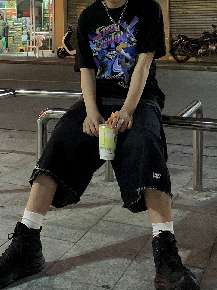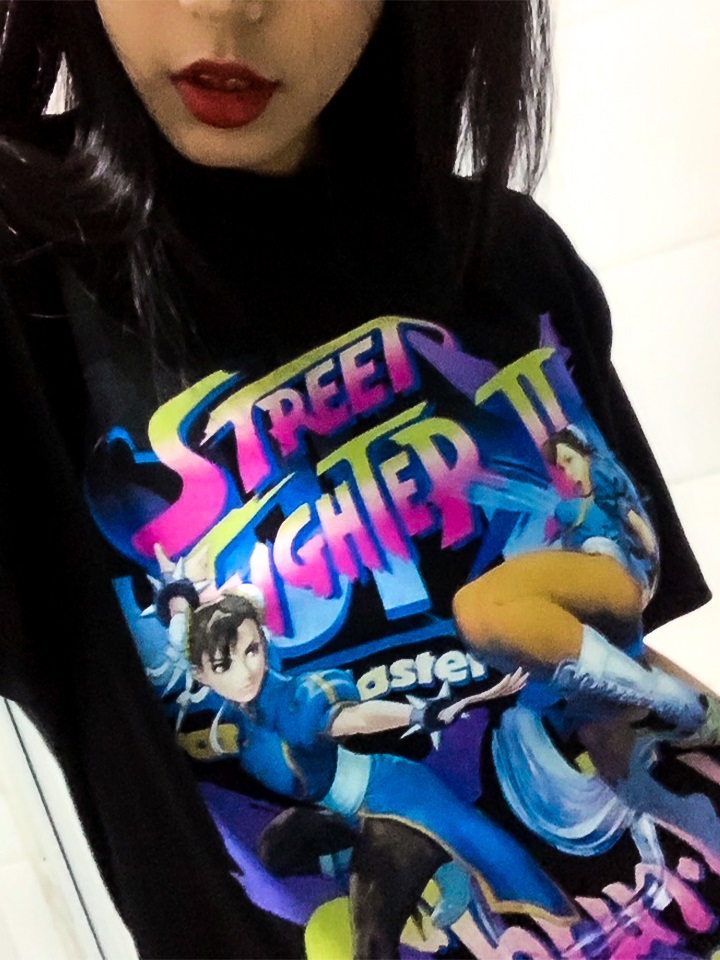 这款印花短袖搭配上一条宽松中长裤,顿时散发出复古休闲的气息,前卫又大方,随性的气质之中带着一丝高冷的韵味。