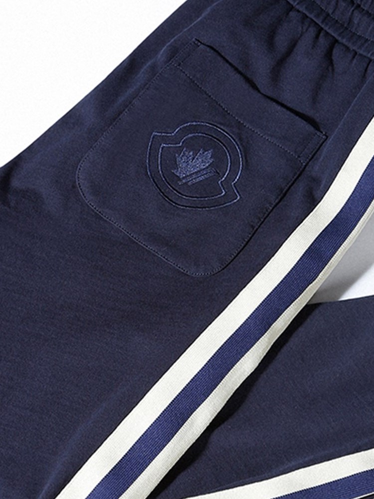 休闲裤采用优质面料,手感柔软细腻,穿着舒适透气裤身两侧的刺绣图案,增添了几分时尚感裤脚处的抽绳设计,方便调节松紧,让穿着更加舒适。