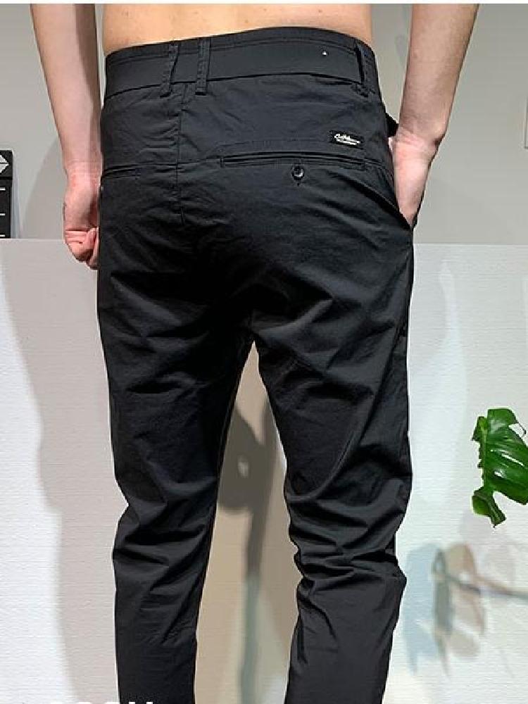 此款男士休闲裤,采用纯棉面料,简约舒适。腰口设计,简约大气,做工精致。腰口拼接紧密,细腻齐整。口袋裁剪自然整齐,精致的纽扣,细腻舒适。