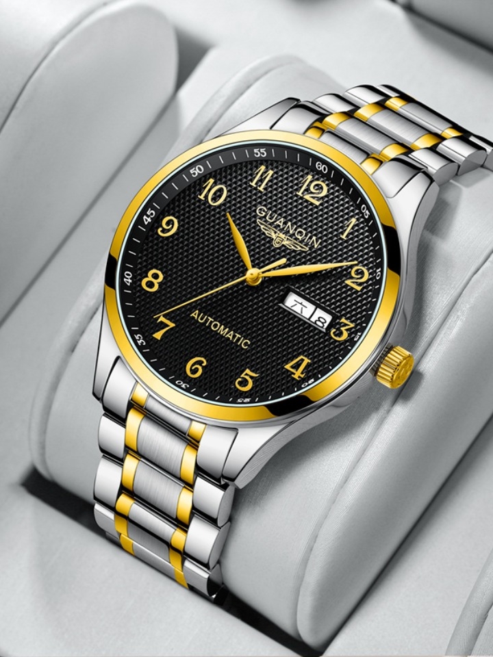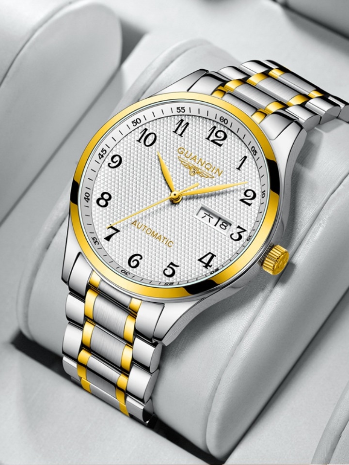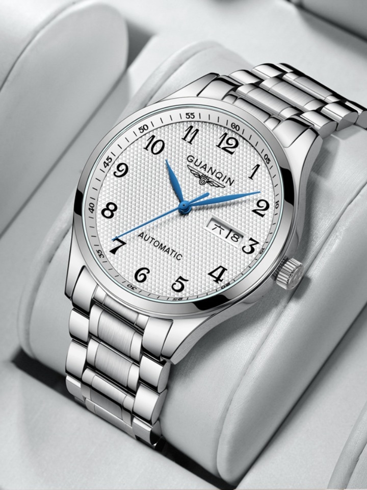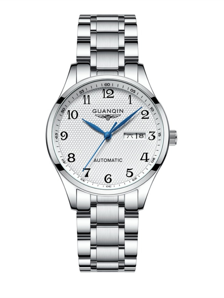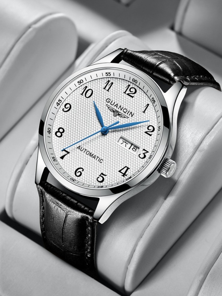 进口机械机芯,满弦能量持续42小时.走时误差能控制在每天2-5秒内.表盘中间的网格底纹,匀称规则。超强夜光指针,绪光后持续发亮,钨钢圈口,外表不惧刮擦,加上蓝宝石镜面。防刮耐磨,性能更佳。