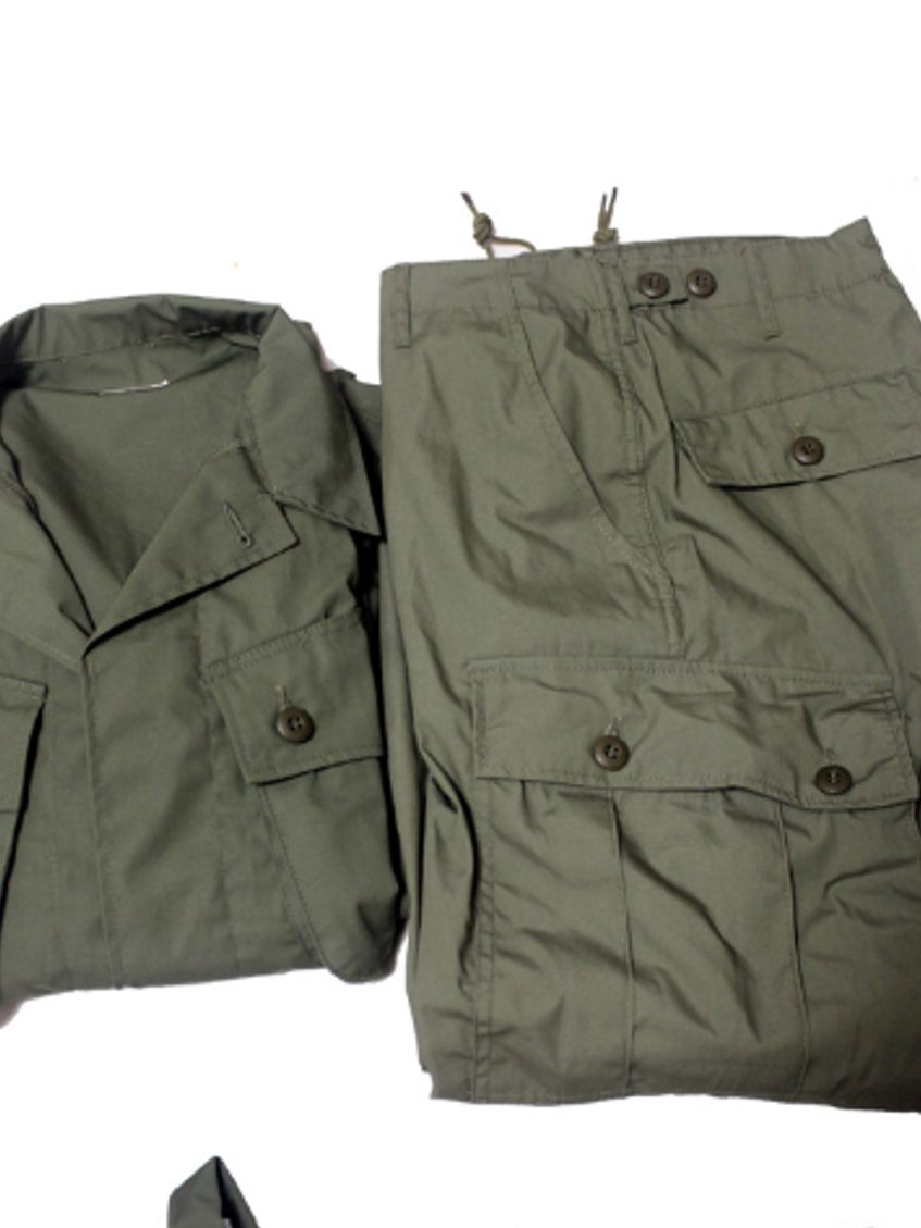 运用时尚军绿色,军事风浓郁,同时充满沉稳雅致气质,吸睛出挑。翻领设计,修饰出干练夹克款型,下装与合体长裤、九分裤等相配皆。