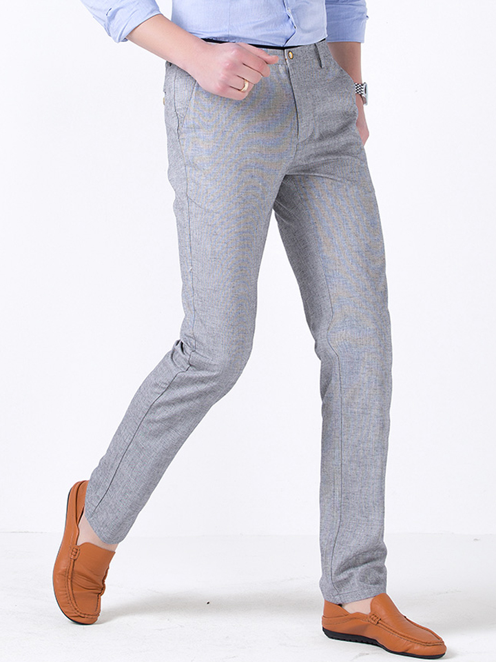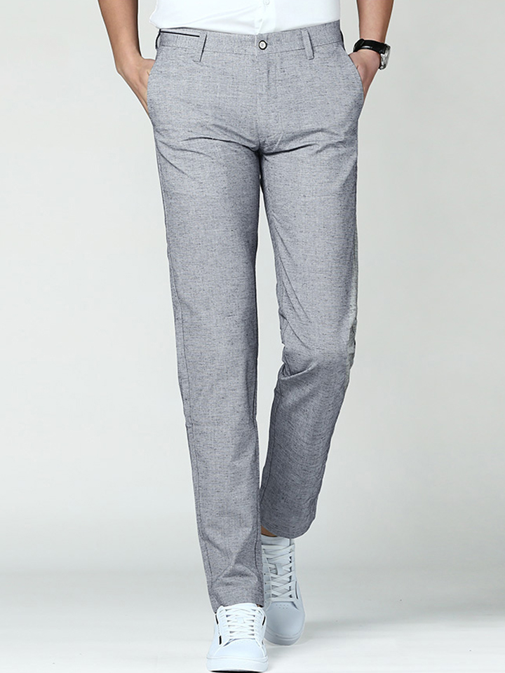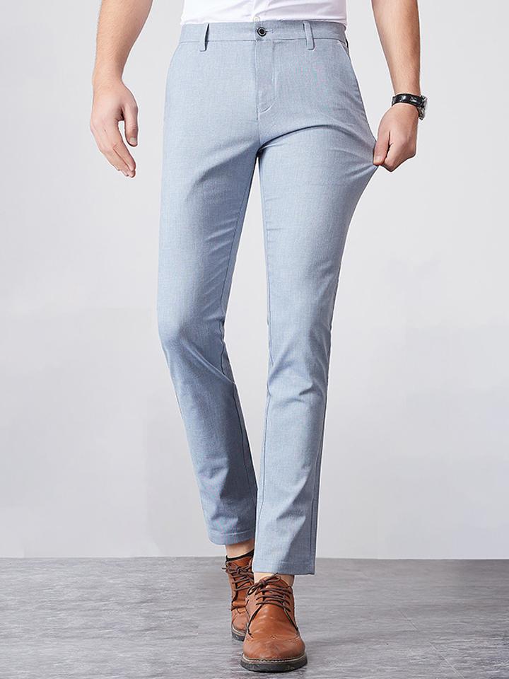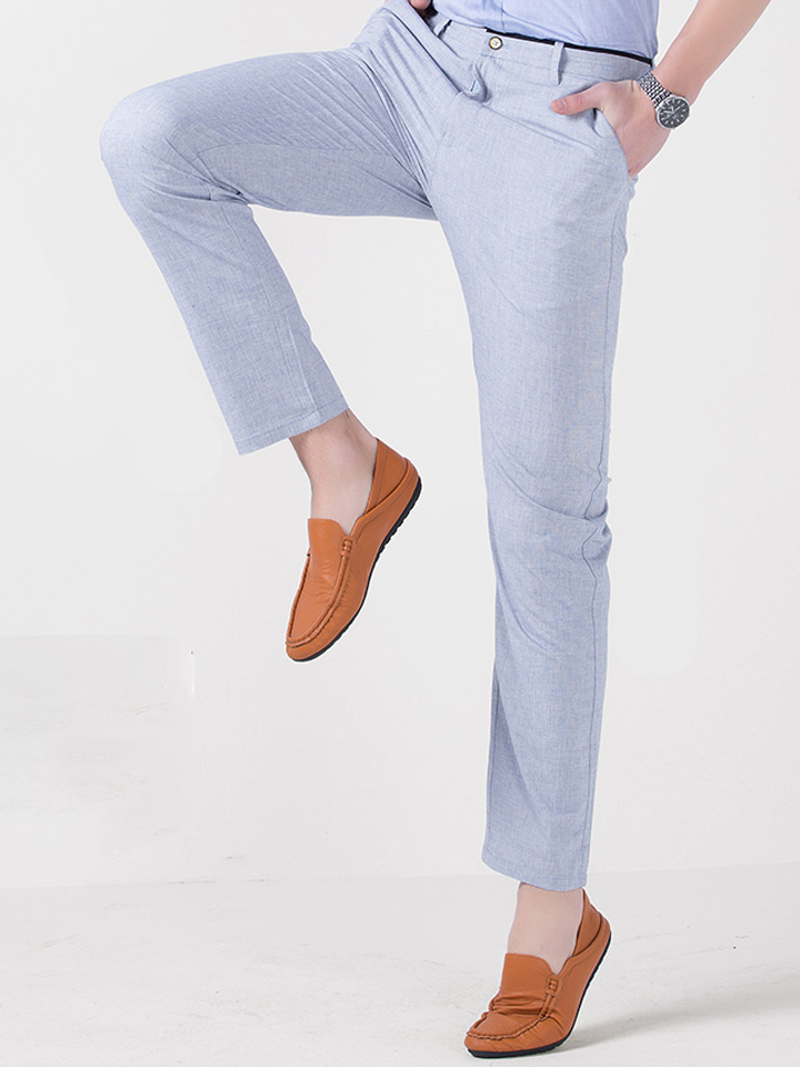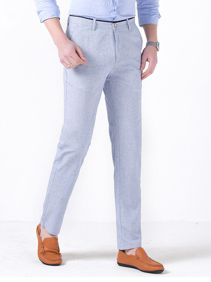 夏天很适合穿着浅色系的休闲裤,不管是上班还是日常,这样的浅色休闲裤都是十分容易搭配。随意和白色、蓝色衬衫搭配,再加上一双休闲鞋或皮鞋,都不失干练成熟男气息。