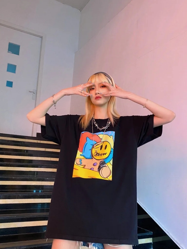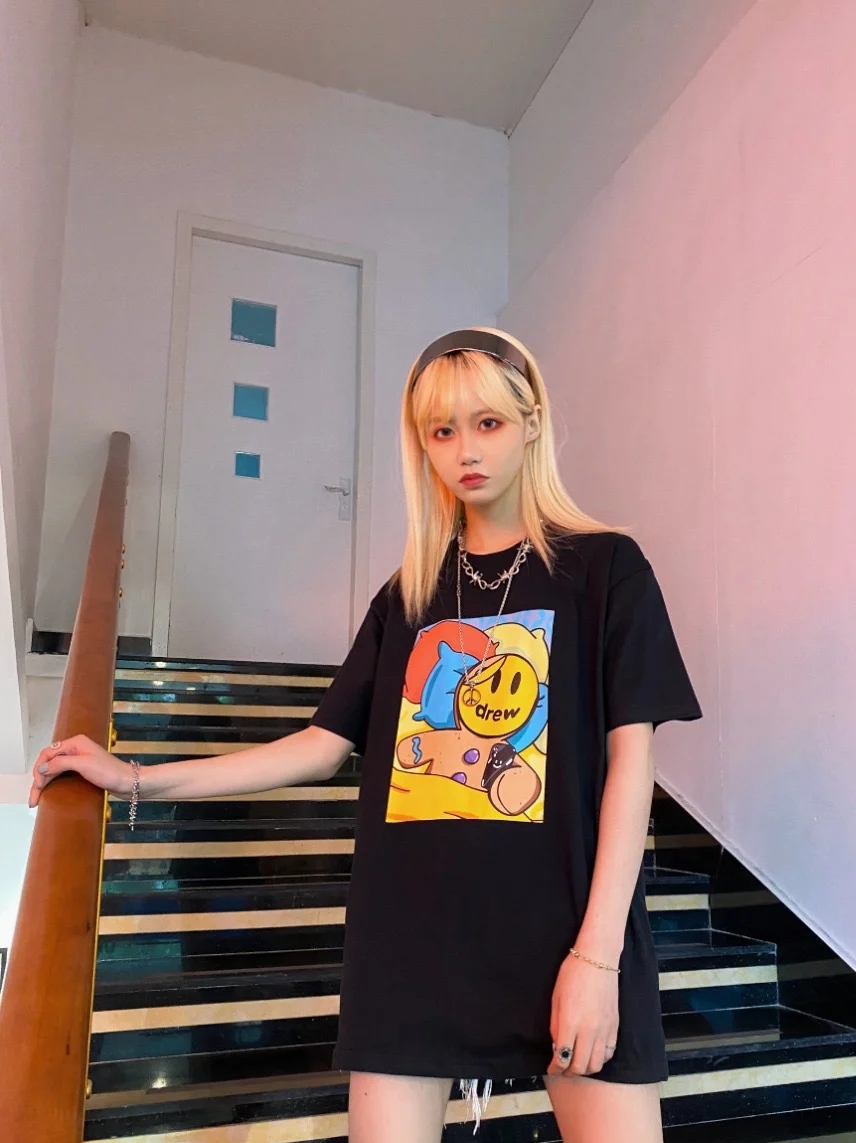 可爱的笑脸T恤充满童趣和童年的回忆,简单干净的白色,给人清爽的视觉感,基础的款式是每年春夏秋衣橱中不可缺少的单品。