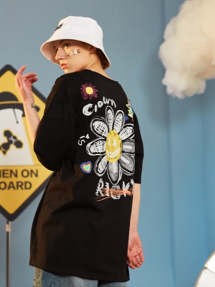 这款t恤是简约的风格,宽松的版型,时尚百搭,胸前的字母印花,很有个性,搭配牛仔裤或者短裤都很好看。
