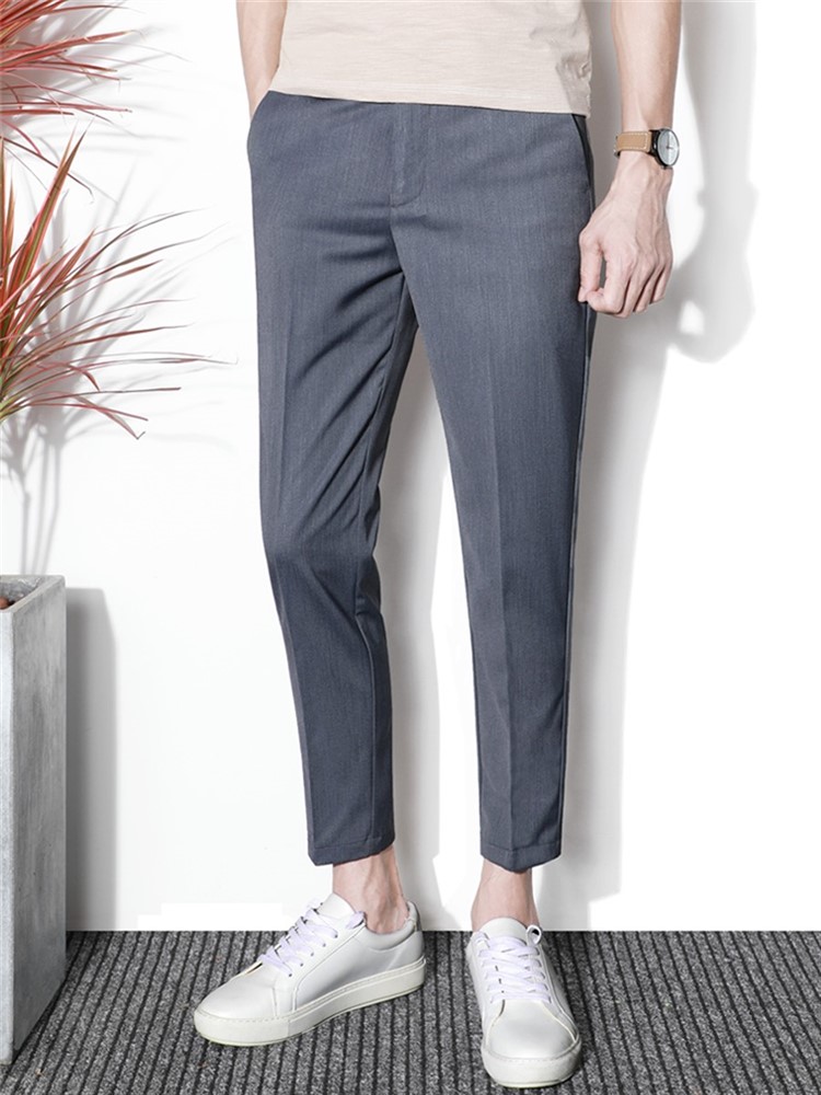 经典男士西裤,巧搭时尚不单调,九分裤长,露出纤细脚踝。
