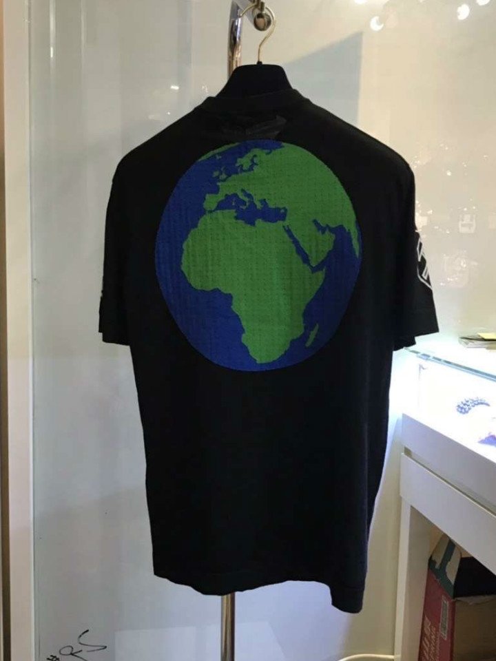 这款LV 黑色条形码T恤 ,采用圆领套头设计,穿脱更加便捷。并运用创意个性的地球印花图案拼接设计,突出整体视觉亮点, 既充满着玩味元素。