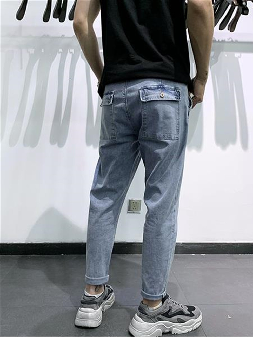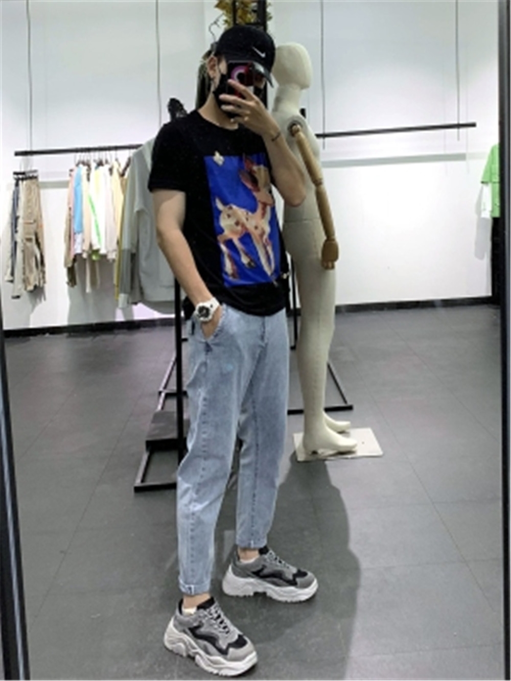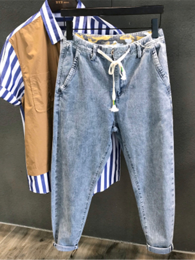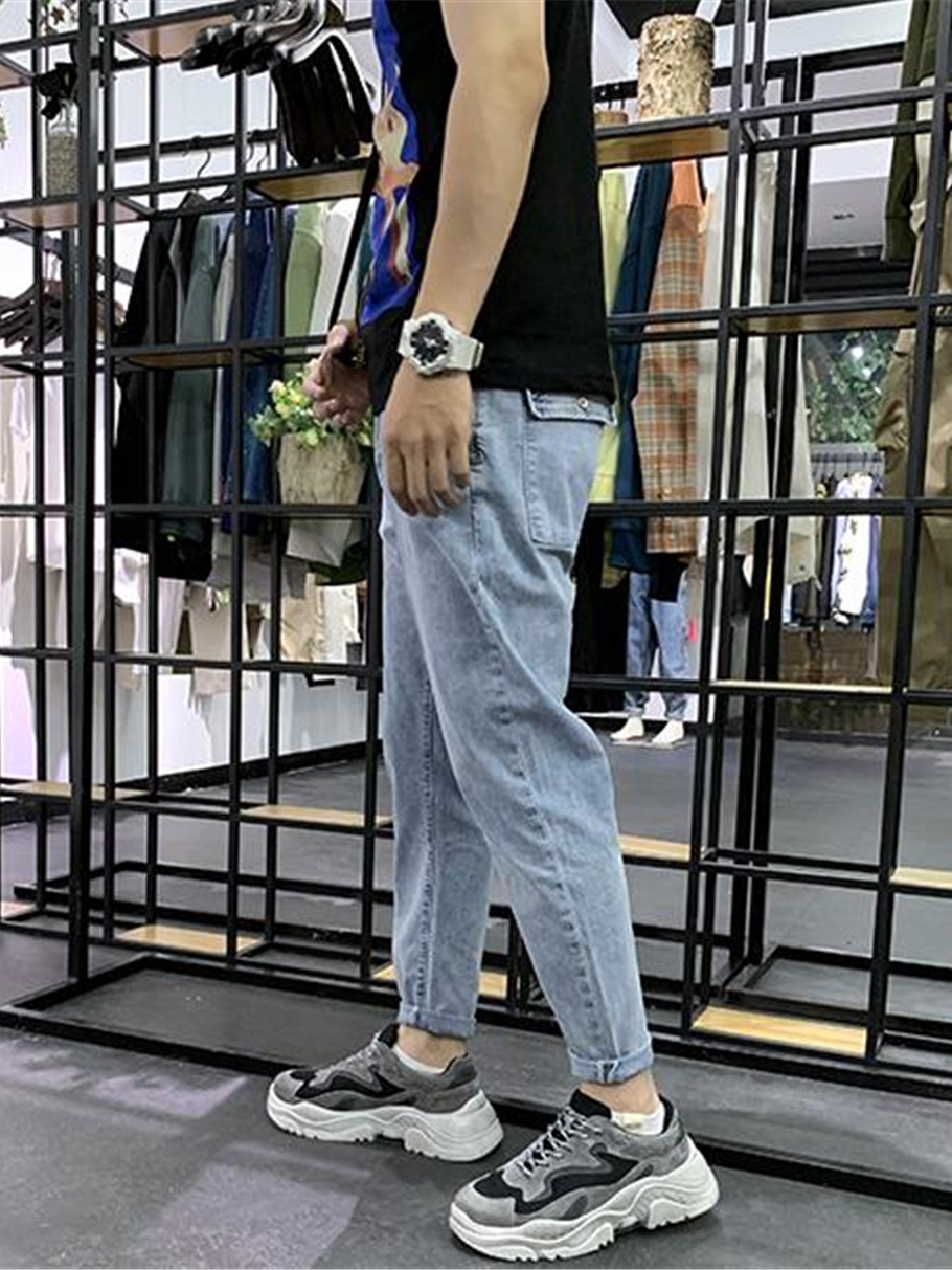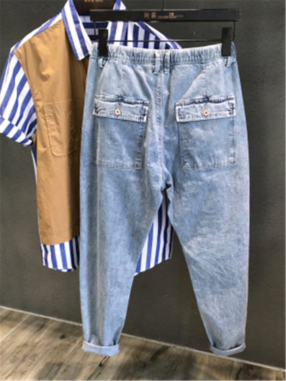 牛仔裤清新大气,松紧腰的设计带来强大的时尚气场,同时放大显瘦效果,结合版型修饰出修长纤细的双腿线条,丰富裤身的层次感,上身更显立体大气,很是帅气。