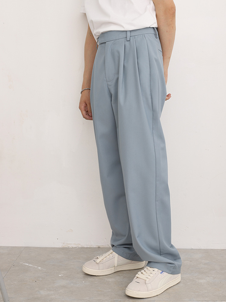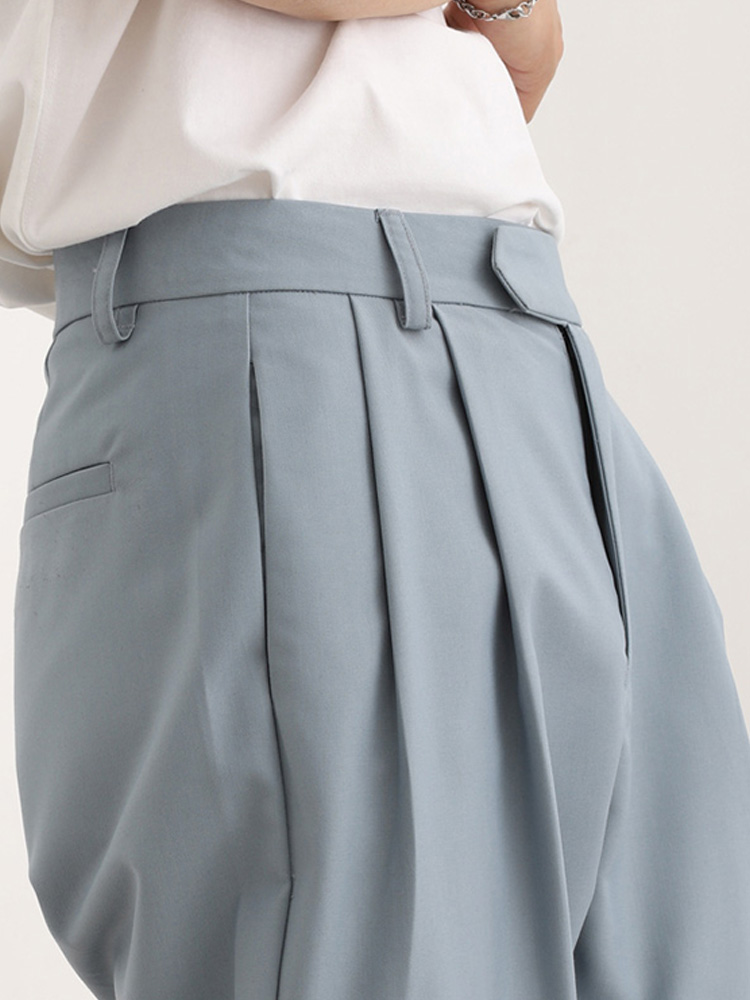宽松直筒的款式设计,轻松修饰不完美身型,展现出修长腿部线条比例,视觉上显高显瘦。而双抽褶的修饰,丰富了裤身的层次感,上身利落有型。