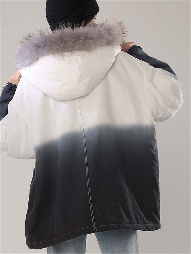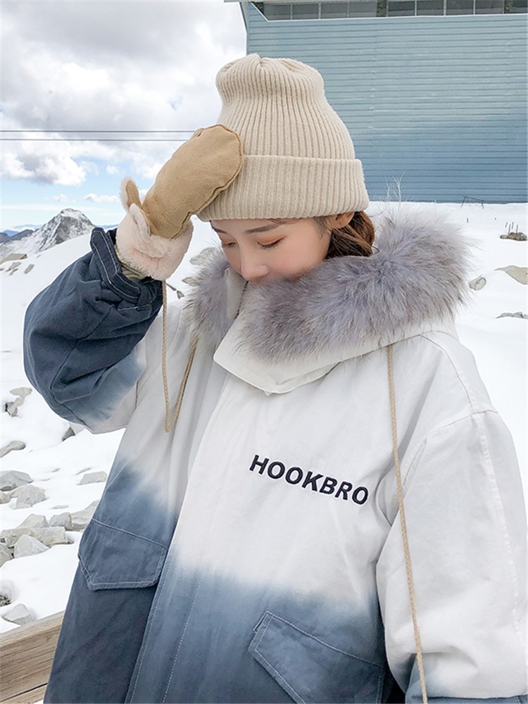 棉服采用了优质的面料,手感柔软舒适,连帽设计,防风保暖,帽子上的撞色拼接设计更是增加了亮点,宽松的版型,穿着舒适自在。