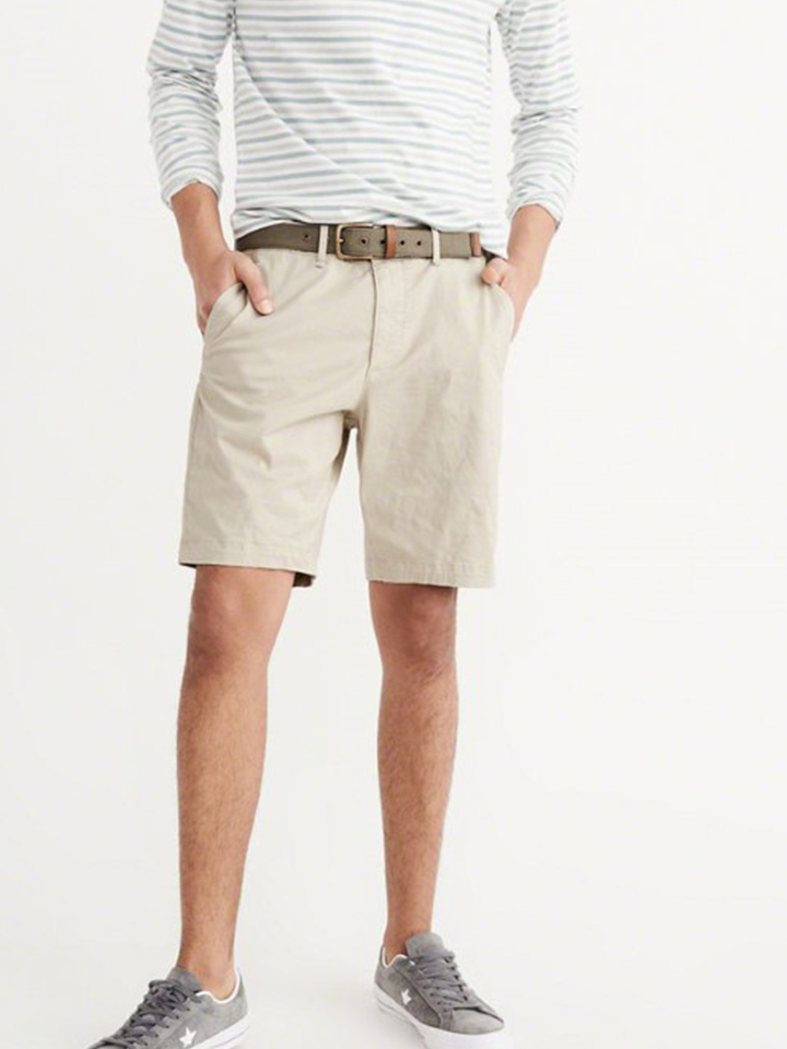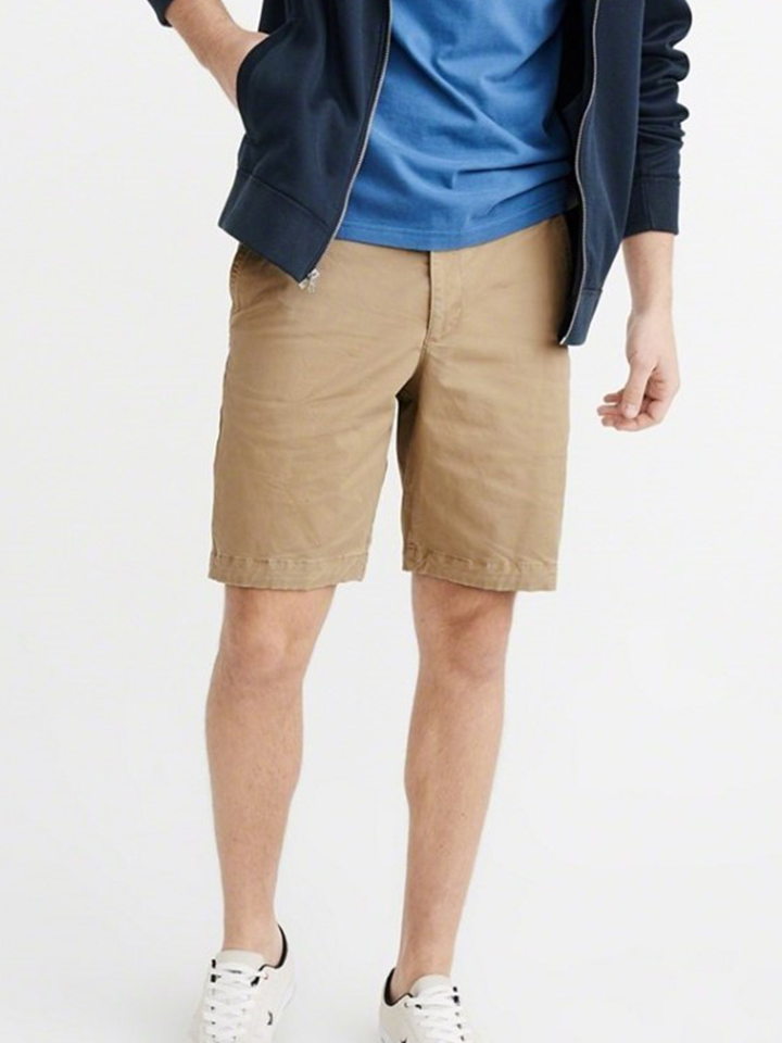 这件卡其色的裤子,不妨同时脚穿灰色运动鞋,整体就呈现帅帅的感觉,穿着效果清新,有活力,非常经典的风格。
