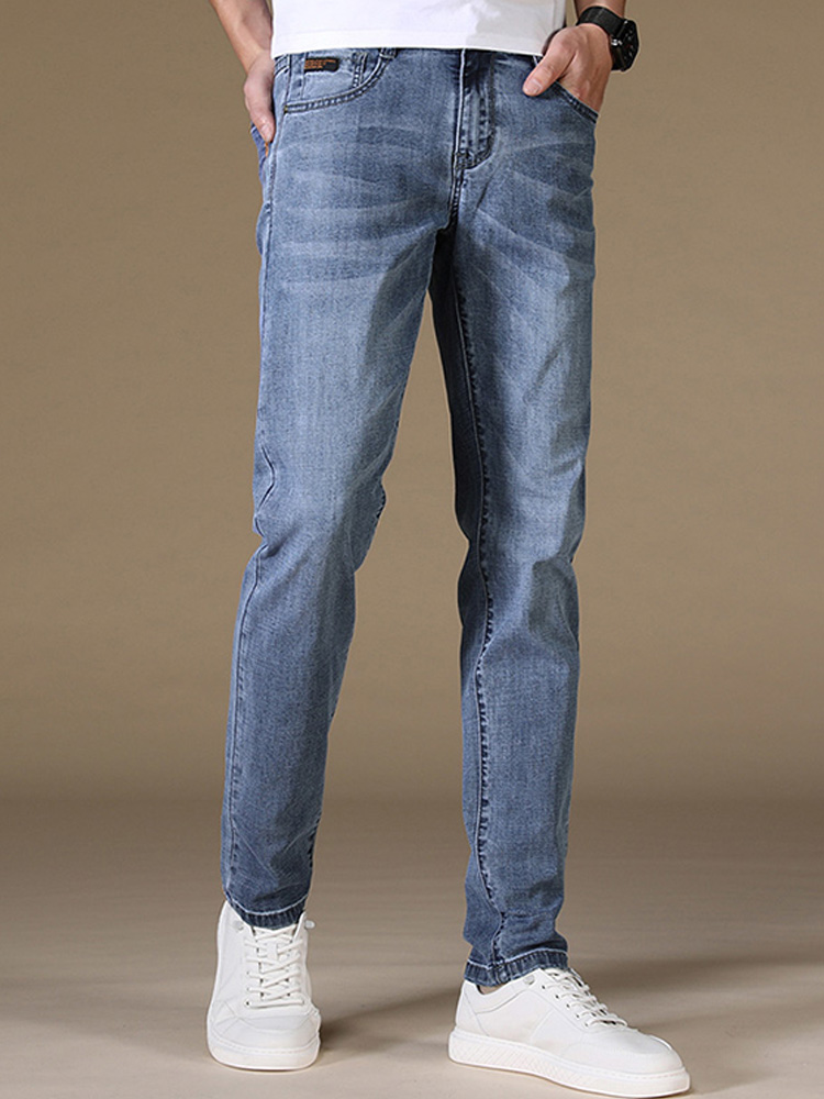 小脚裤的版型,穿着简洁利落,水洗工艺的加入,整体休闲又不失优雅气息。搭配上休闲鞋以及T恤出街,休闲通勤都非常合适,让你尽显青春潮男气息。