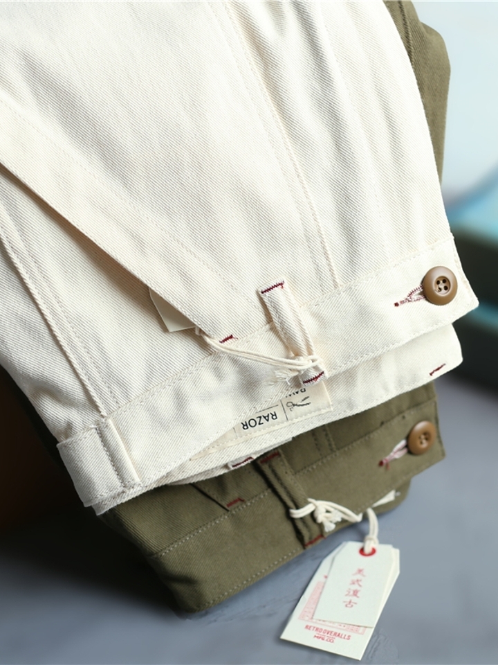 修身合体的工装裤版型设计,上身效果非常棒,很显瘦显高挑腿型。其面料精选用斜纹纯棉布料,具有良好的吸湿透气性能,并经过特殊的水洗处理,使穿着更加休闲舒适。简洁的纯色色调没有过多的花哨装饰,干净的外形给人一种轻松的视觉感。斜插口袋设计,口袋处五角星胶印,两头撞钉装饰固型设计,丰富的视觉体验,美观实用。