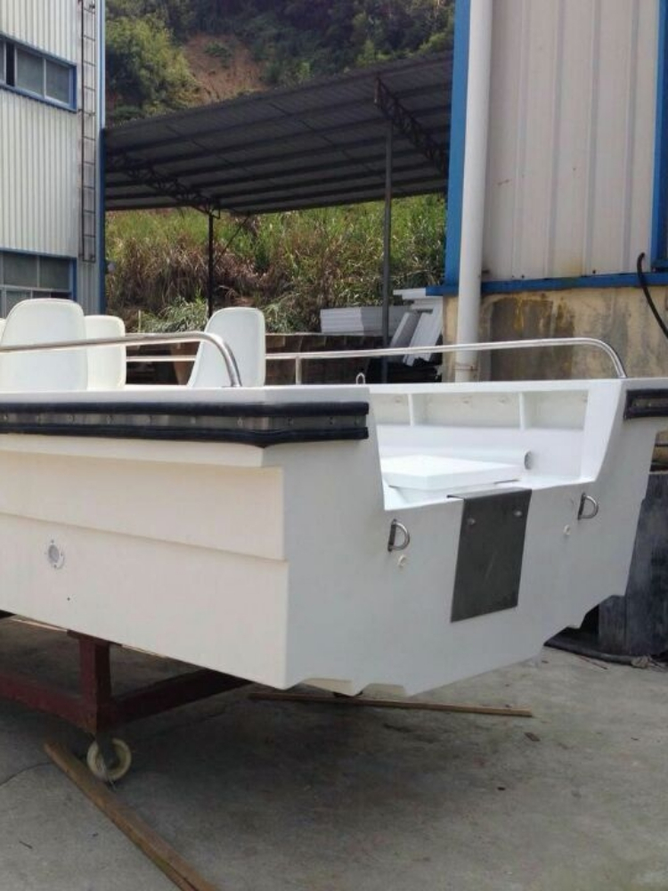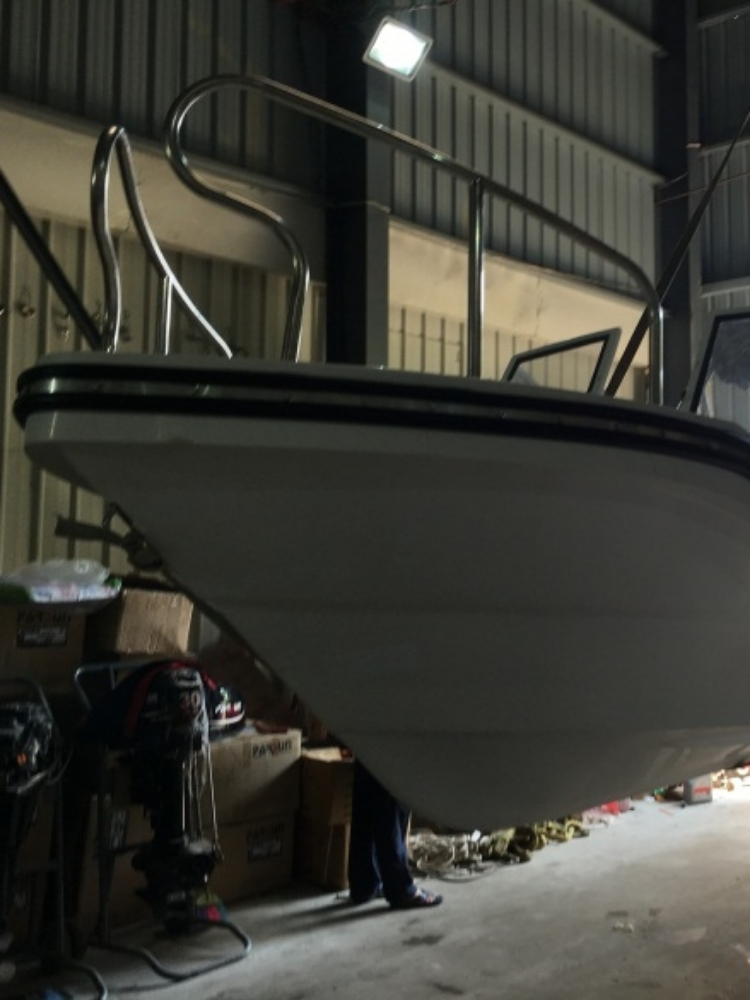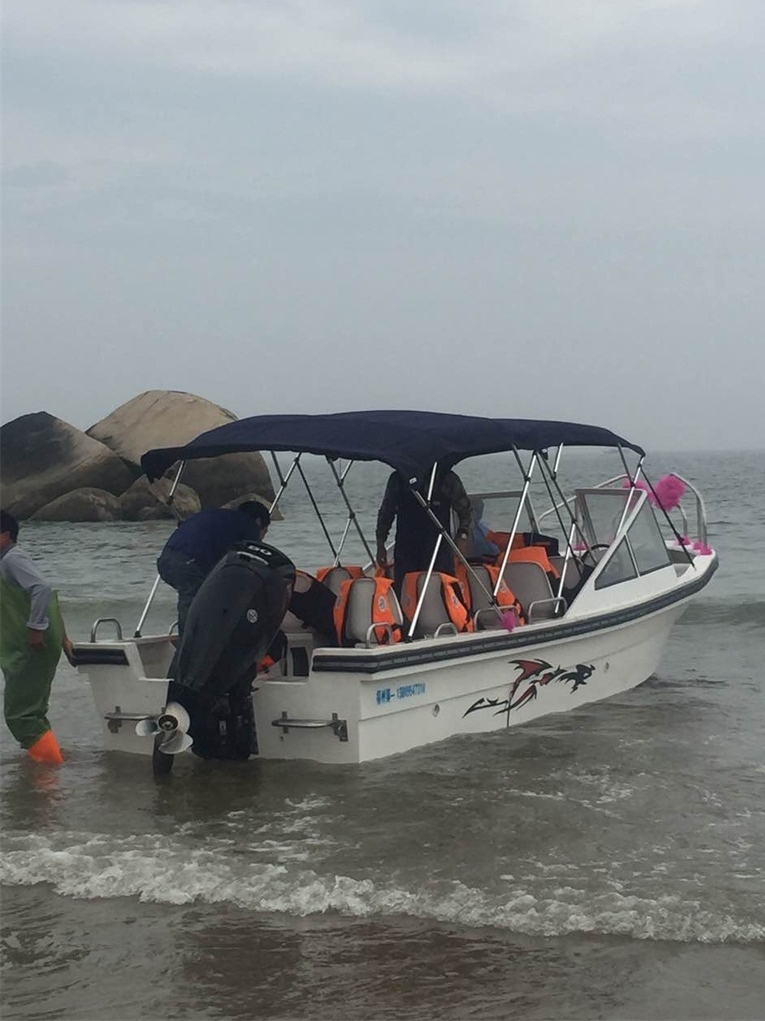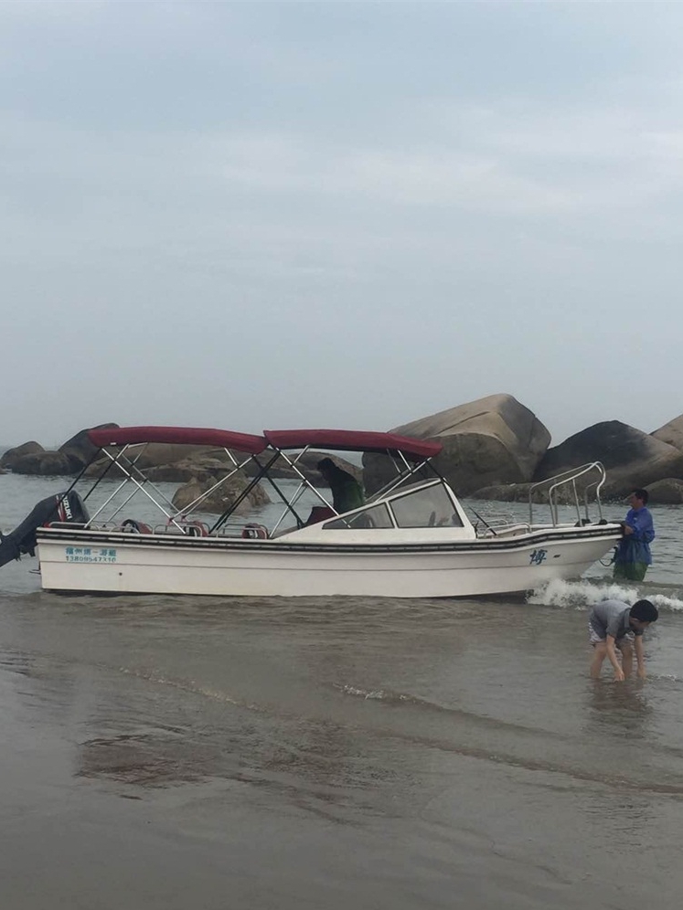 玻璃钢制作的游艇,适合于平潭、舟山一带高风浪海区,或者是海上,一款高颜值的海上游艇,钓鱼,观光两不误的设计。