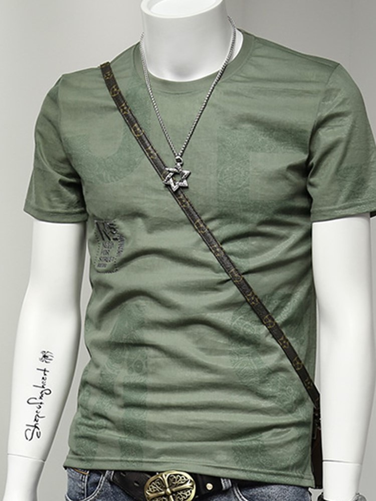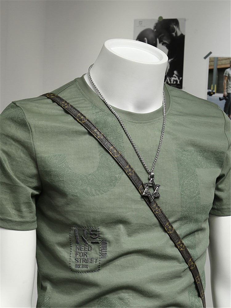 T恤采用优质面料,柔软舒适,亲肤透气,经典的圆领设计,修饰颈部线条,简约的纯色设计搭配精致的刺绣图案,彰显男士的时尚魅力,宽松的版型,穿着舒适自在,搭配休闲裤或者短裤都很好看。