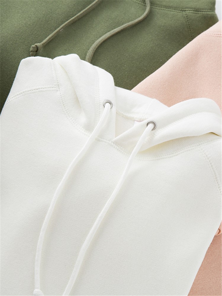 简约的纯色卫衣,宽松的版型,穿着舒适自在,连帽的设计,休闲时尚,胸前的字母印花,增添了几分俏皮感,上身休闲百搭。