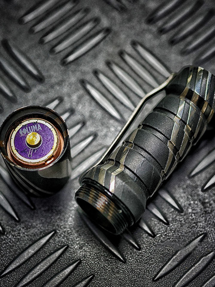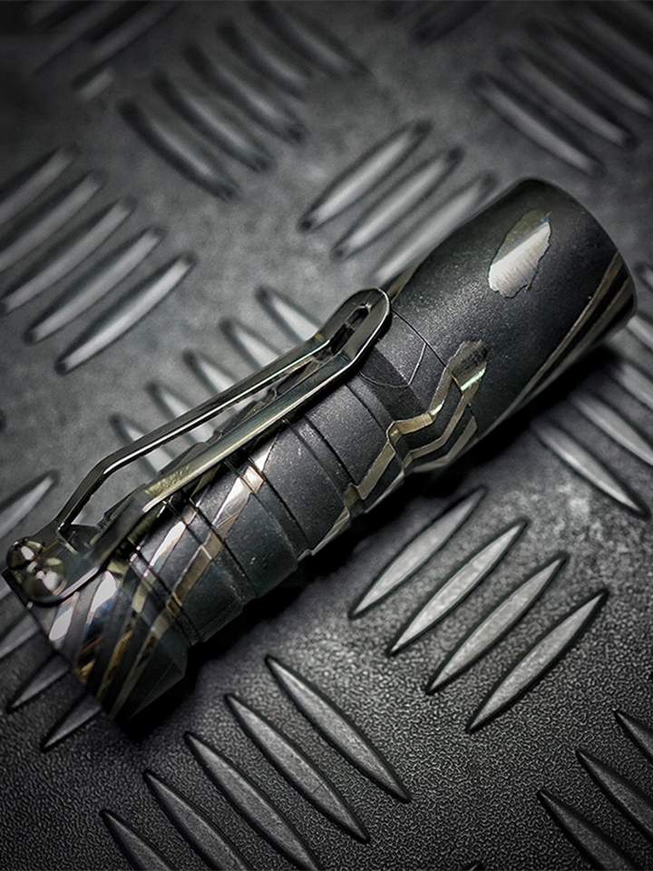 体格小巧轻量化,适用于日常照明。钛金属CNC精加工制造,大马士革纹理清晰自然,线条优美,实用性强。