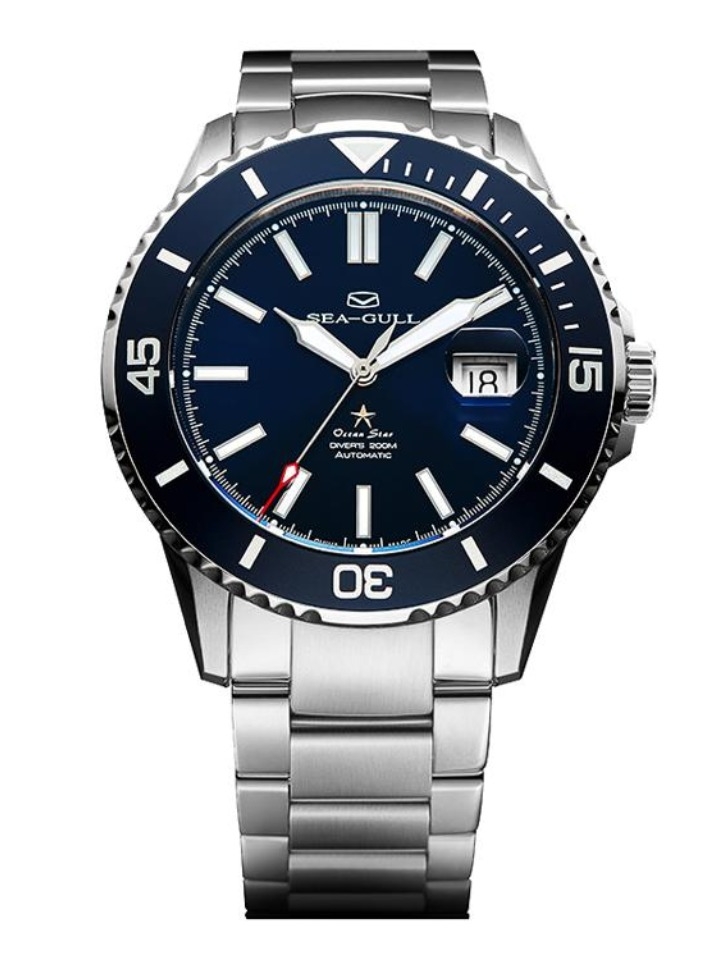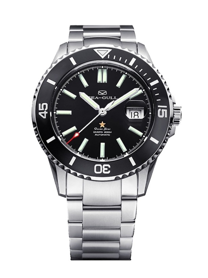 人工合成蓝宝石表镜,精准美观且耐磨性强。加强型夜光设计,夜间观看更加舒适。 高科技黑色陶瓷潜水圈,防水效果好。