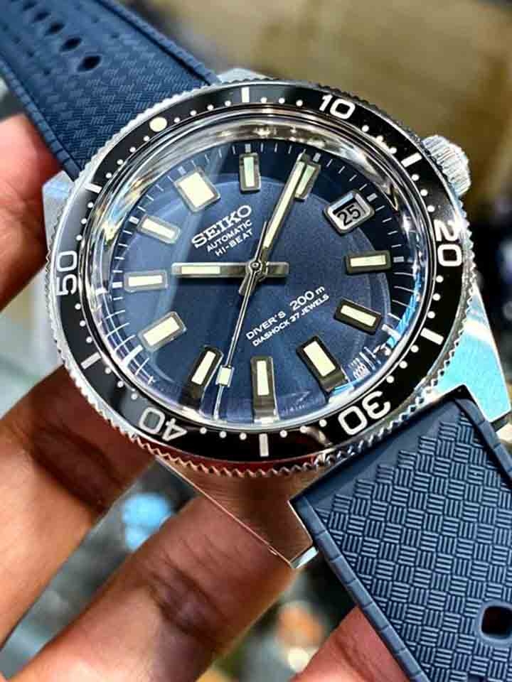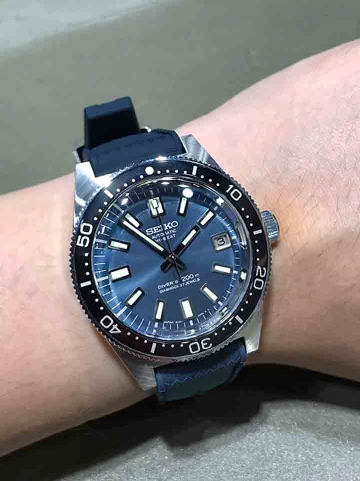 手表全身呈现蓝色 。很清爽的一款百搭表。可搭各色系的西装、衬衫和短袖运动装,感觉就是年轻、休闲、清爽、百搭 都市潮男备选。