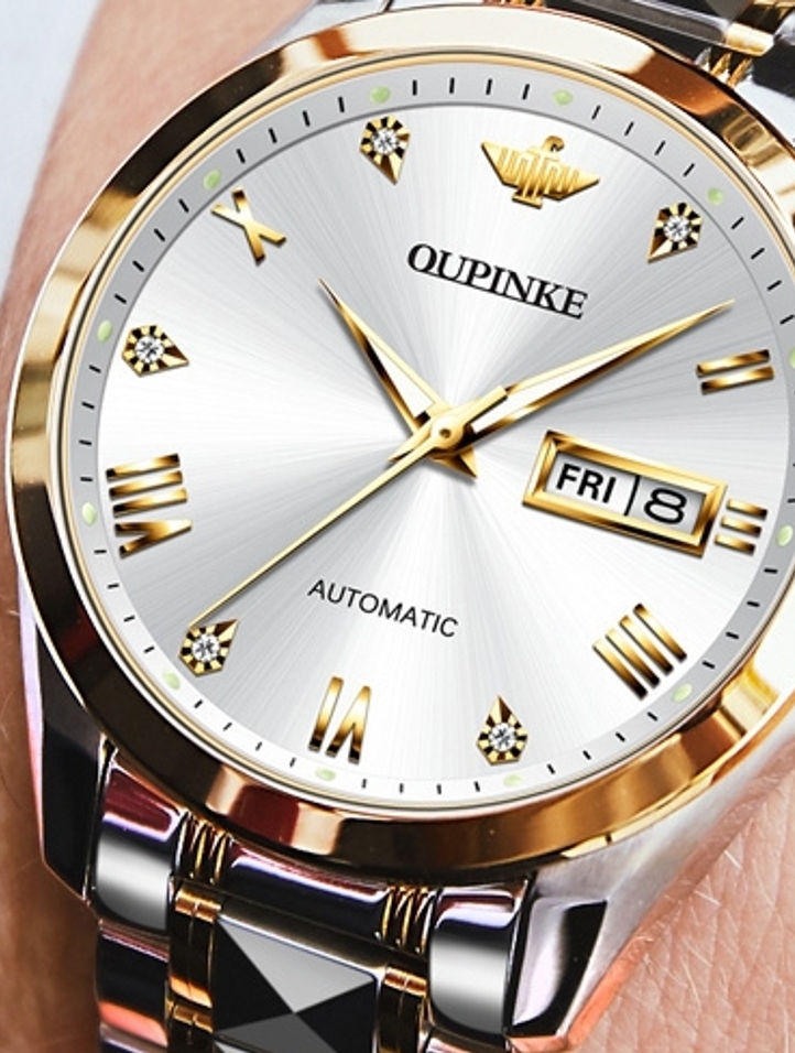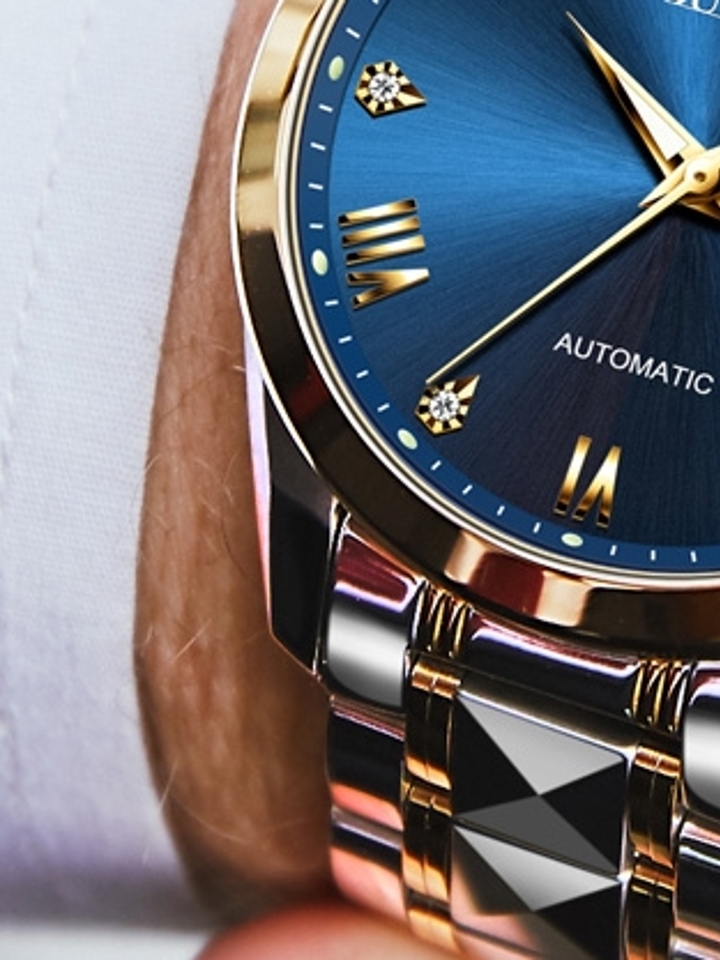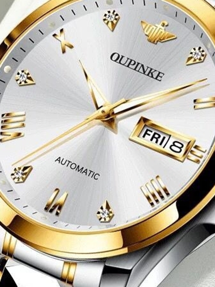 瑞士知名腕表品牌Manjaz/名爵精心打造,采用瑞士原装自动机械机芯,后部镂空设计,为你展现精致机械美学;白色表盘搭配金色表圈与时标,12点处镶嵌两颗真钻,配上修长的指针,举手投足间充满优雅利落气质。