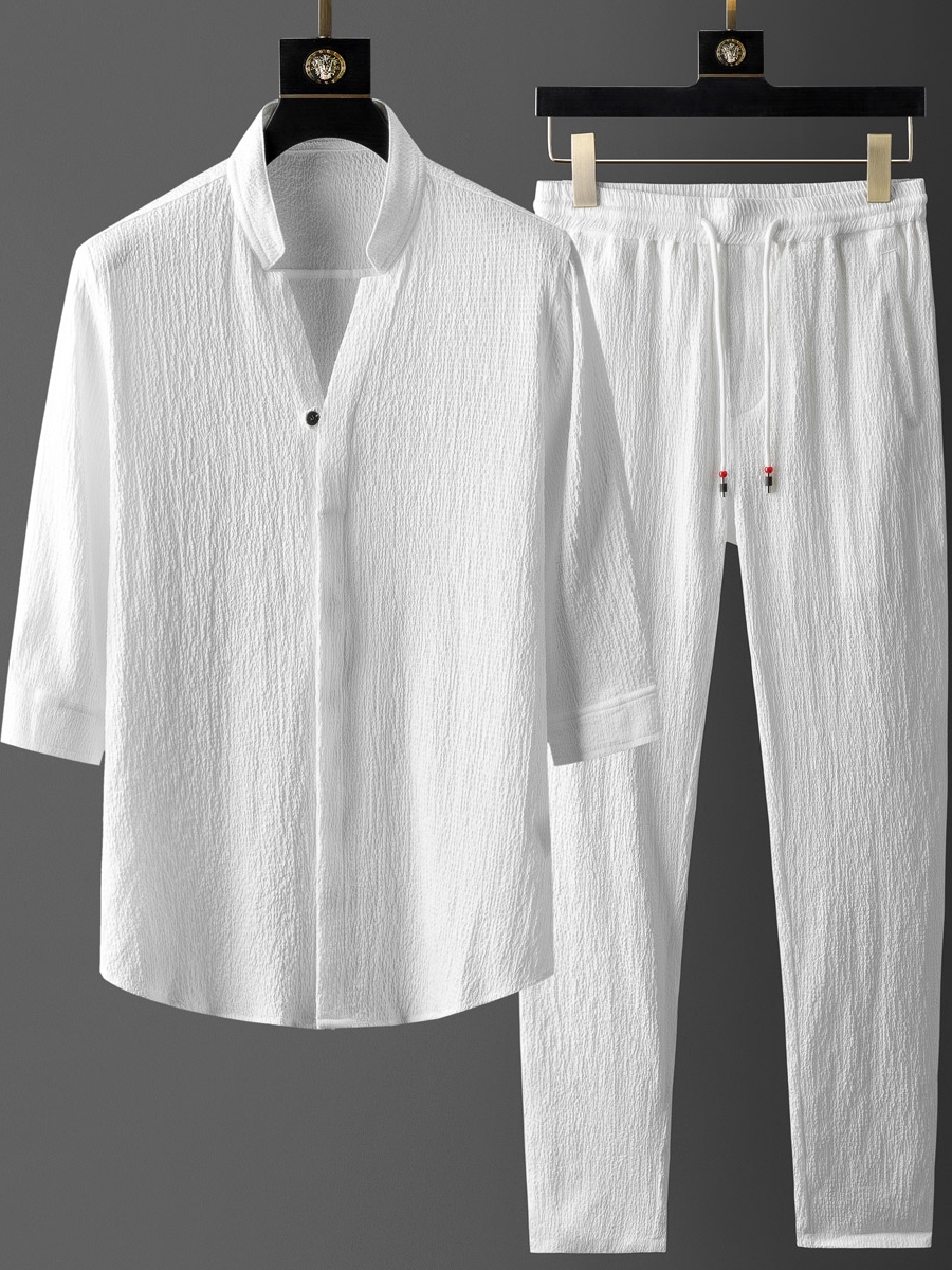 这是一款夏季的运动套装,套装的设计不需要自己搭配就能给你带来十分复古中国风的风格,带给人舒适自由的体验。
