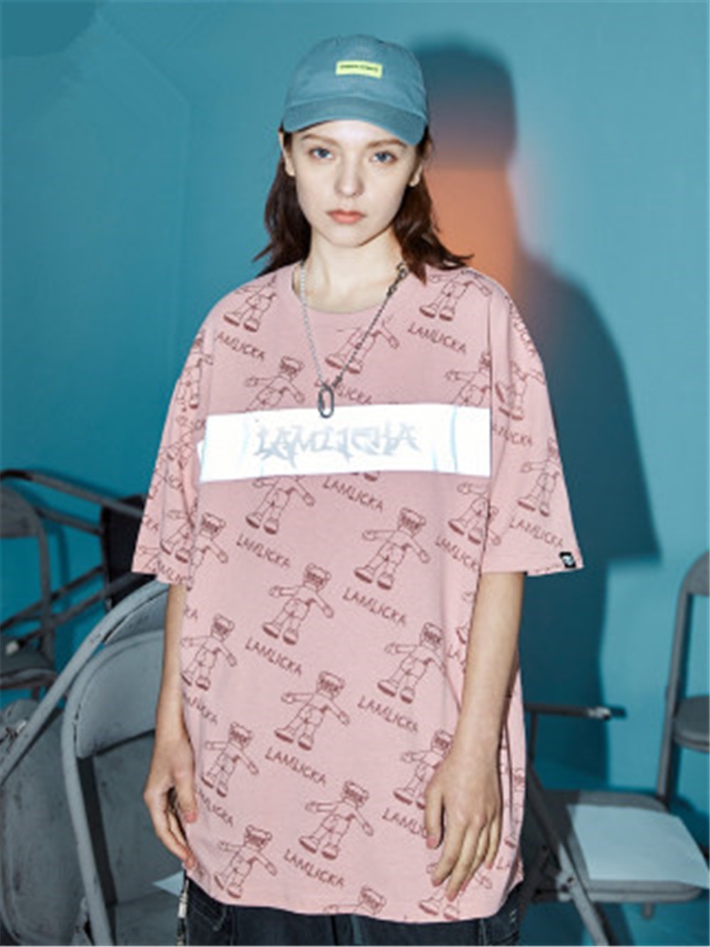 这款T恤采用了宽松的版型设计,穿着舒适自在,可爱的印花,充满了青春活力,搭配牛仔裤或者短裤都很好看。
