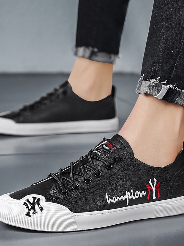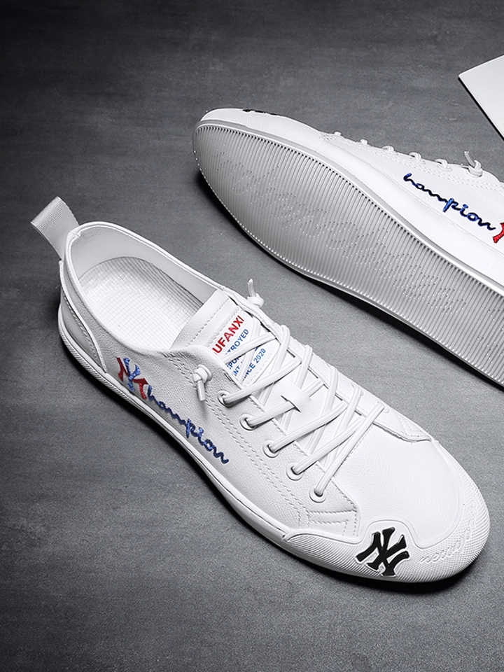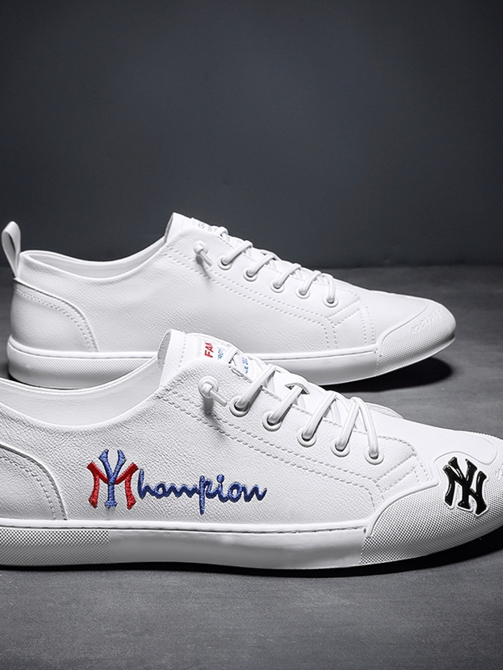 简约纯色运动鞋,系带低帮休闲时尚百搭,防滑鞋底侧面红蓝的方块是这双运动鞋上唯一的不同颜色。潮流休闲透气百搭运动鞋。