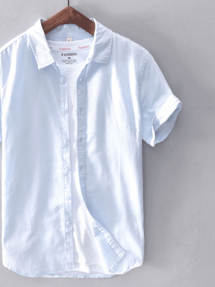衣服采用经典稳重的衬衫领型,恒久笔挺地贴合颈部,耐穿不易变形,凸显男士魅力;优质的环保树脂钮扣,简约大方,光滑圆润,彰显品位;直线下摆设计,车线细密有序,线条流畅,经典诠释男人的价值空间;袖口走线紧致均匀,抬手间体现精致简约,舒适洒脱。