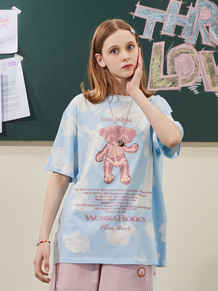 特别的趣味骷髅小熊图案,彰显个性。宽松的版型,利落的剪裁,休闲百搭。潮,是一种生活态度!不与世界为敌,不被社会同化有自己独立的思想和看法!