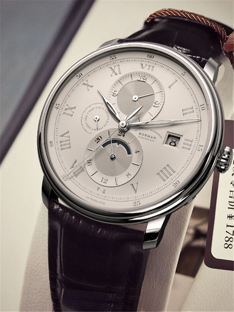 这款机械表采用进口合成蓝宝石玻璃表镜,更加耐磨耐划,再也不用担心表镜被划花了。真皮表带,质感舒适,搭配高档表盒包装,尽显新贵气质。
