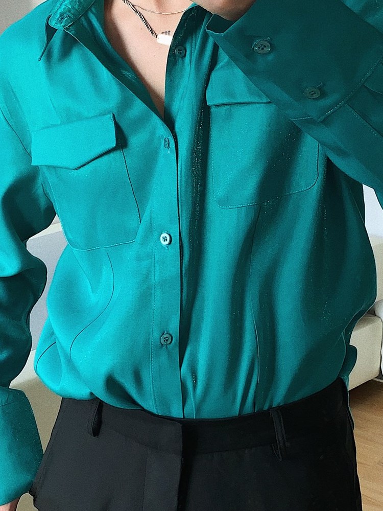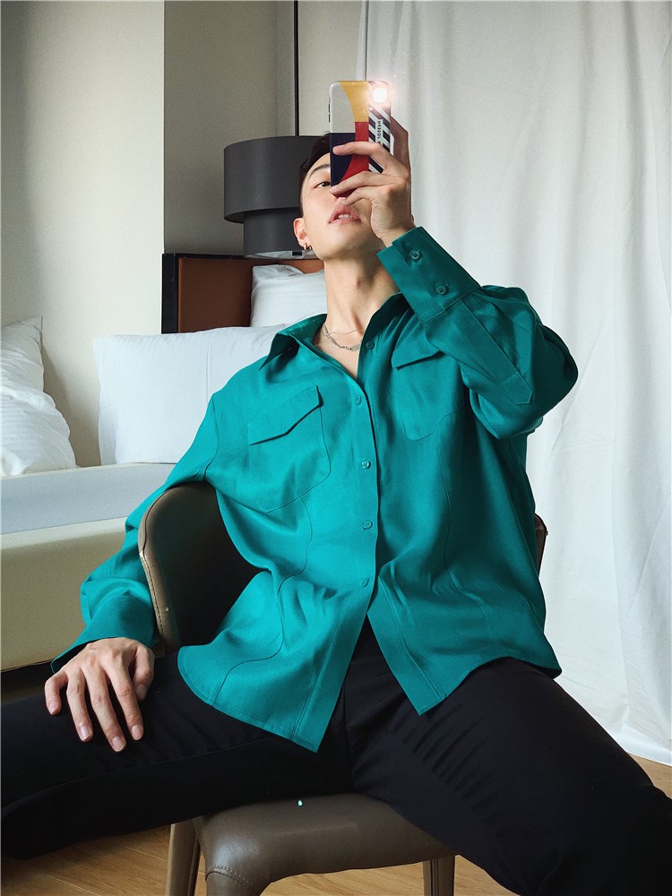 衬衫采用了经典的翻领设计,搭配上黑色的色调,显得很有质感,同时也是很好的修饰身材,宽松的版型,穿着舒适自在,很适合日常穿着。
