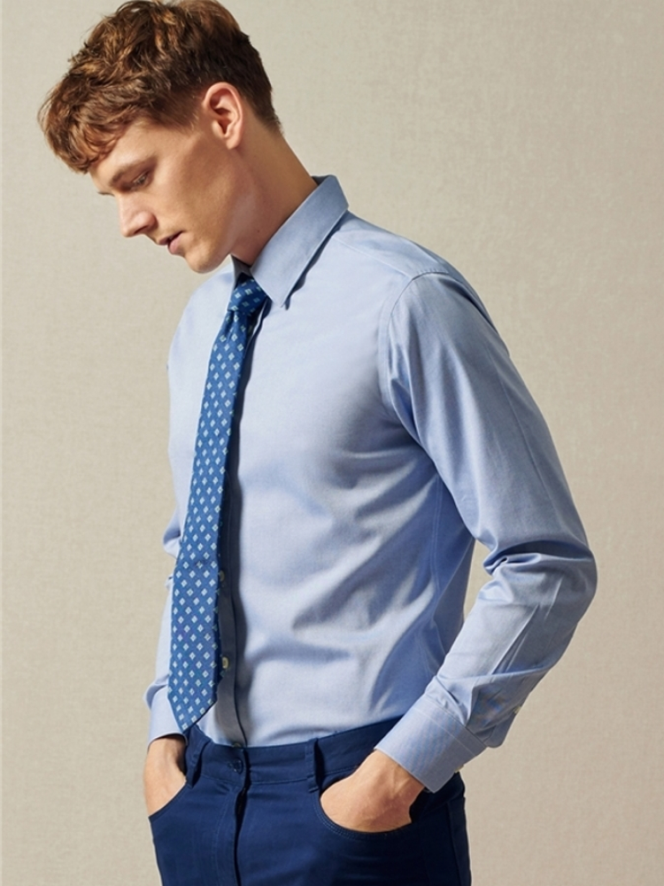 翻领设计,凸显绅士气质。免烫处理,穿着更加舒适。衬衫翻领,修饰颈部线条。