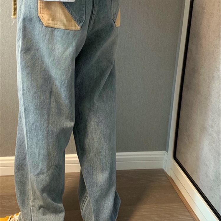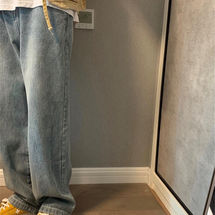 高腰设计,拉长身材比例。高腰牛仔裤,显瘦显腿长。直筒裤型,修饰腿部线条。