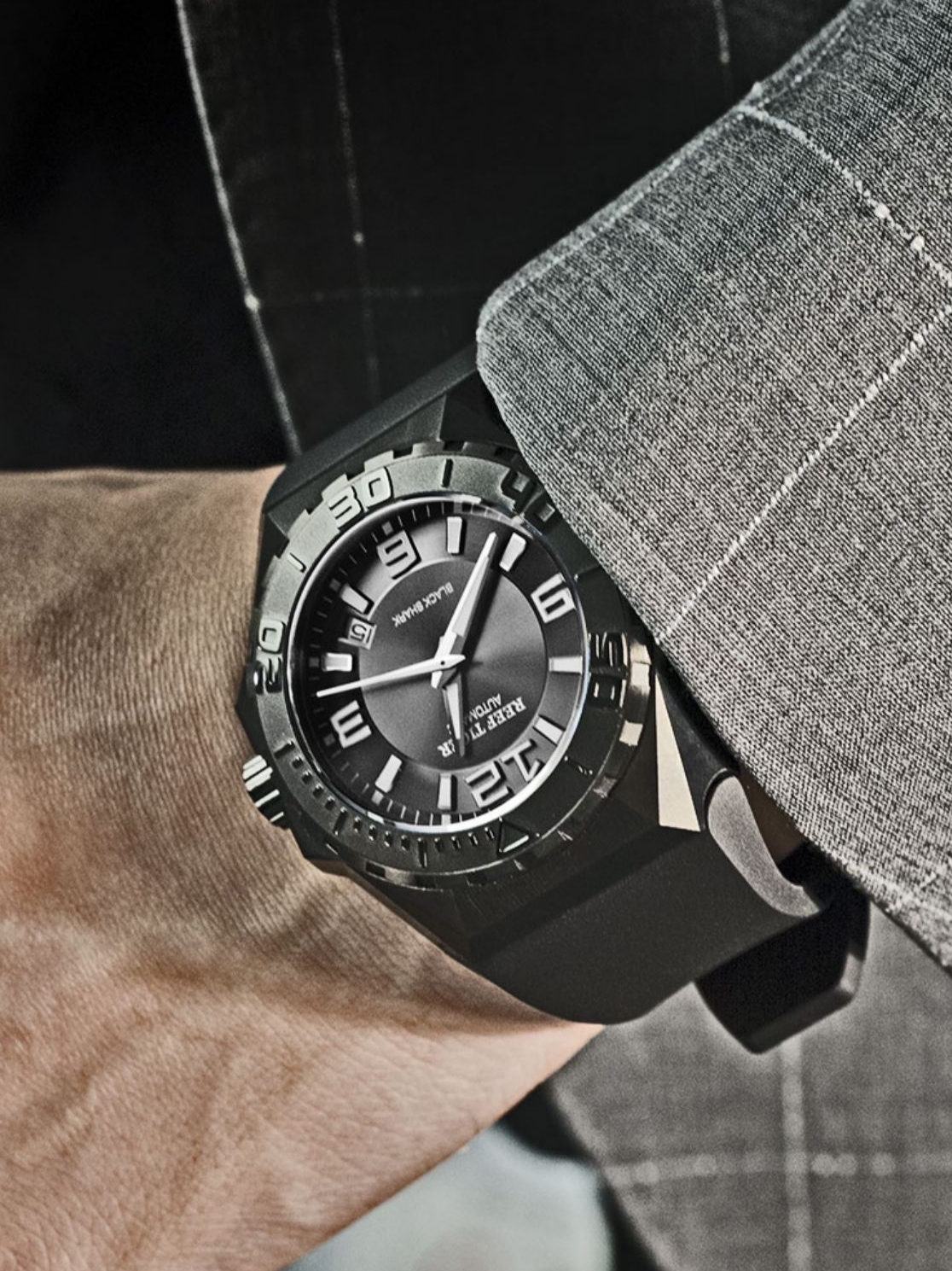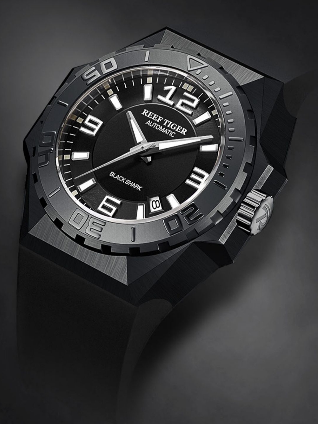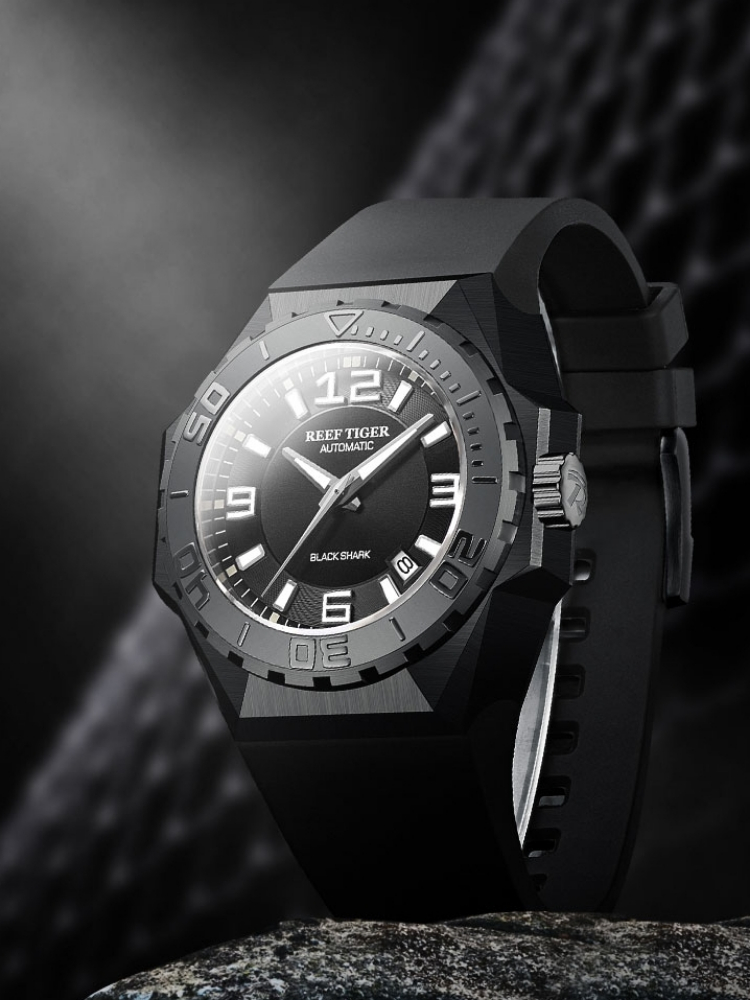 这款手表设计的风格很有军旅风,表盘的设计依然是大表盘,但是加入了棱角分明的形象,让手表看上去更加的威严霸气。