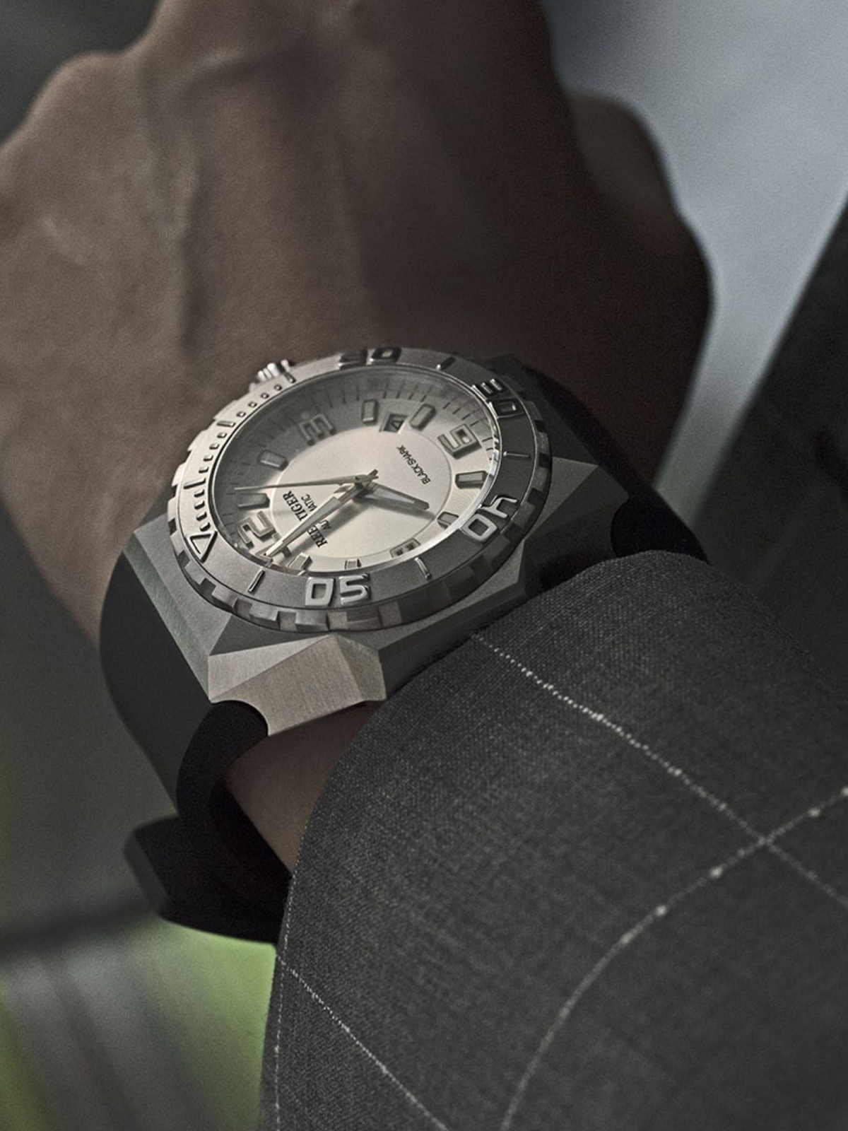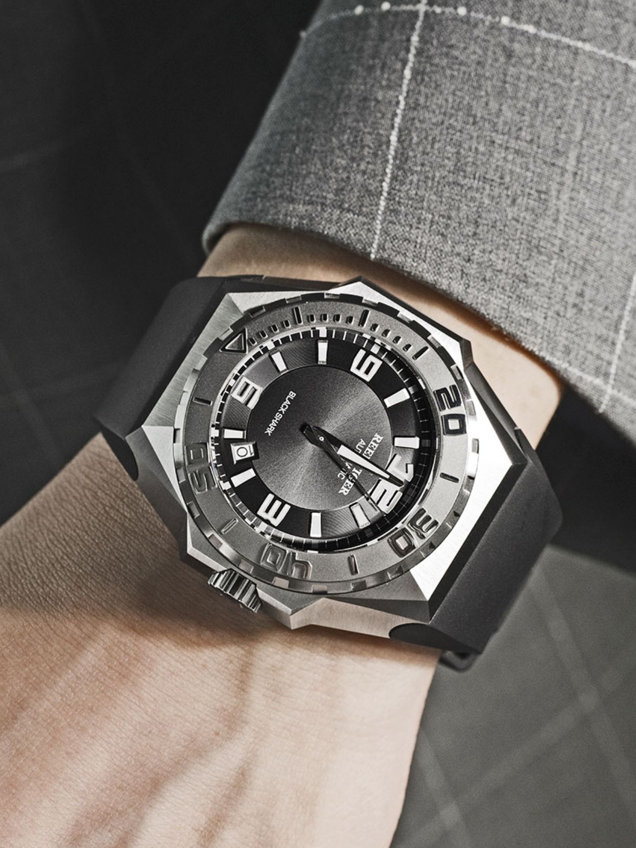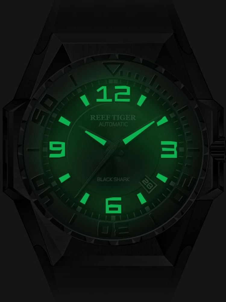 这款手表设计的风格很有军旅风,表盘的设计依然是大表盘,但是加入了棱角分明的形象,让手表看上去更加的威严霸气。
