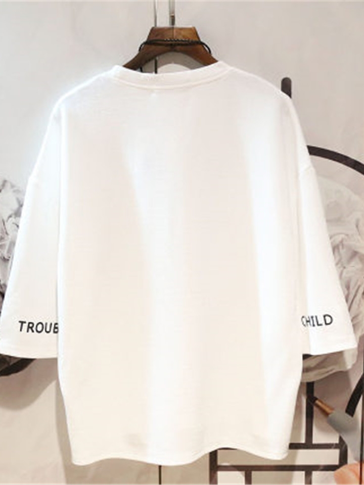 这款t恤是简约的风格,宽松的版型,时尚百搭,胸前的字母印花,很有个性,搭配牛仔裤或者短裤都很好看。