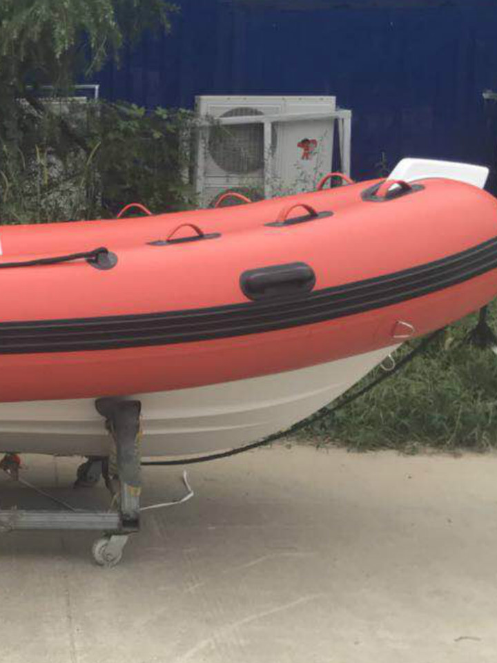 船说 玻璃钢底冲锋舟,船体两侧各设有一个可360度旋转的万向浆座,可以对方向操控自如,设有一个自动泄压装置,防止因充气过满导致充气舱爆破另外坚硬的船体和安全的结构设计,结合船身防撞条,安全防护船体,减少使用中撞击对船体伤害提高船只使用年限,能助您安全到岸。