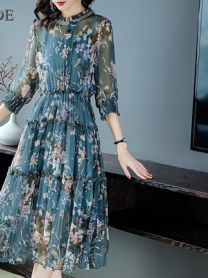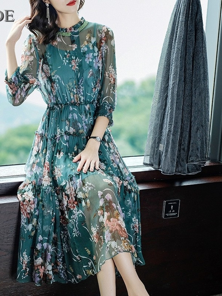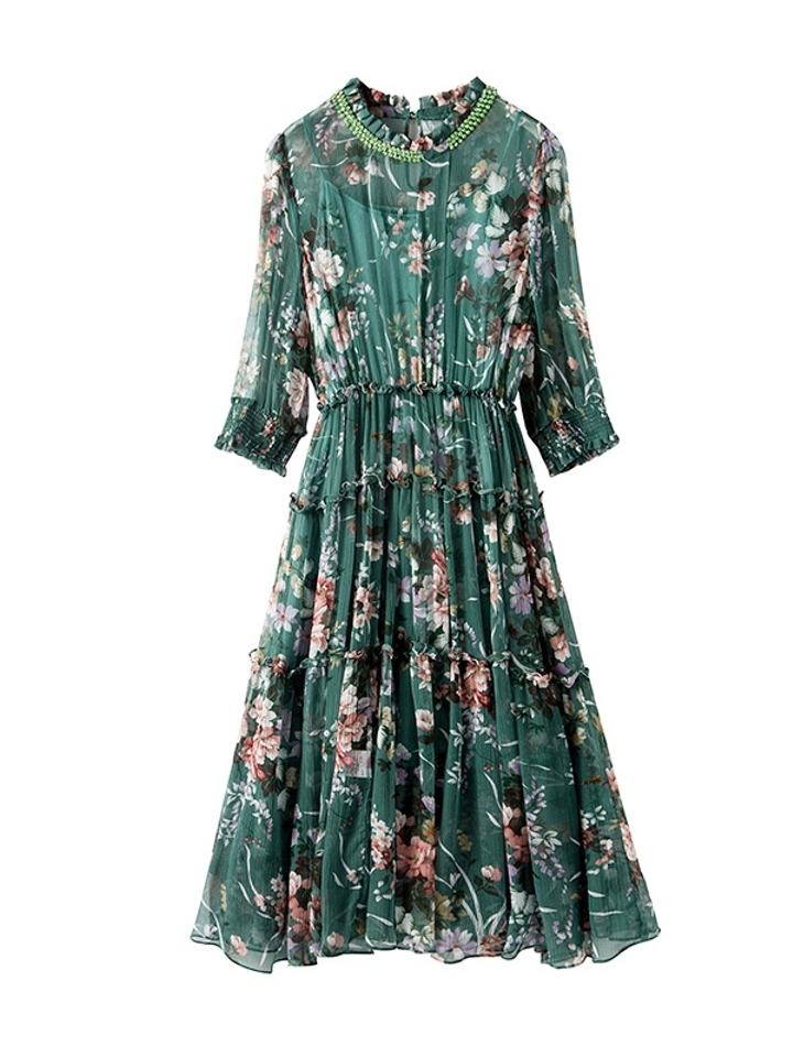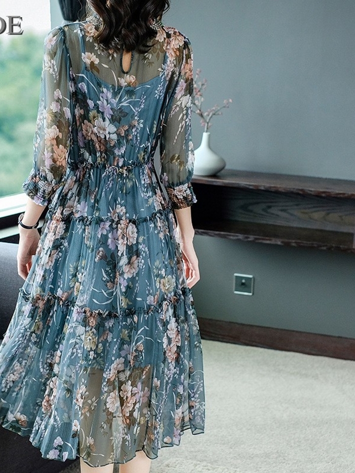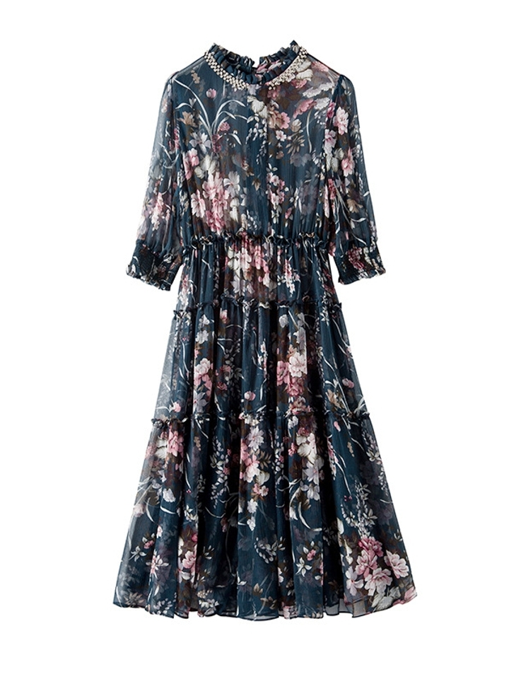 蚕丝连衣裙,个性的水墨印花图案,优雅独到,何有艺术感和中国特色。
