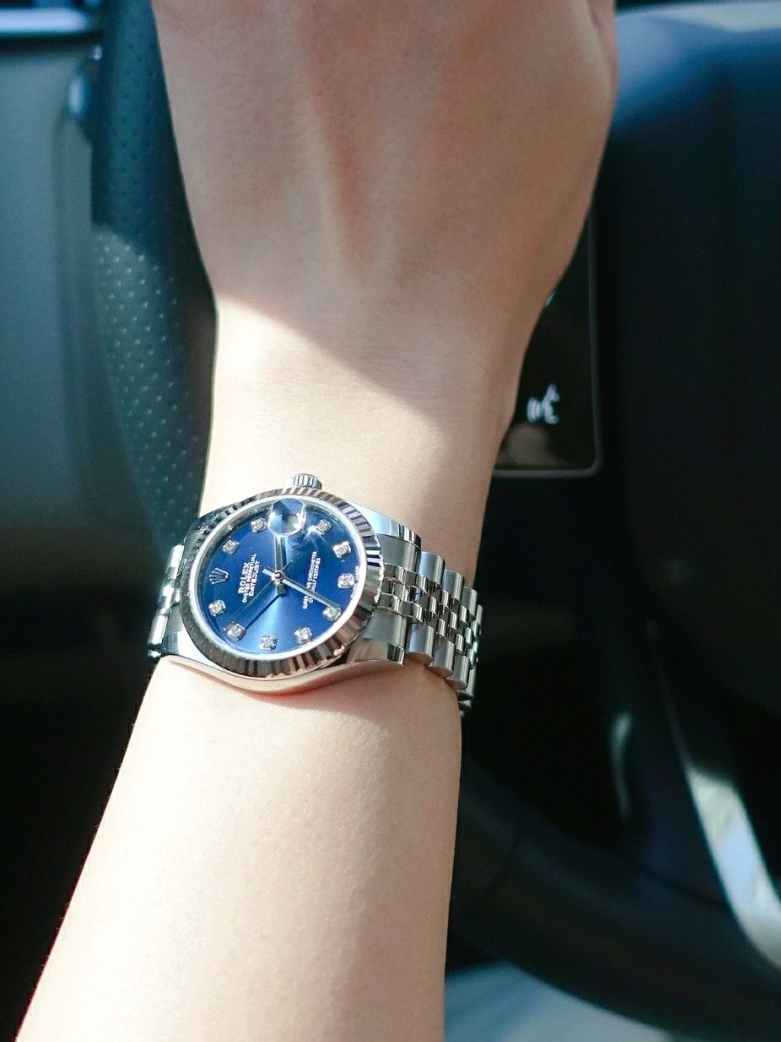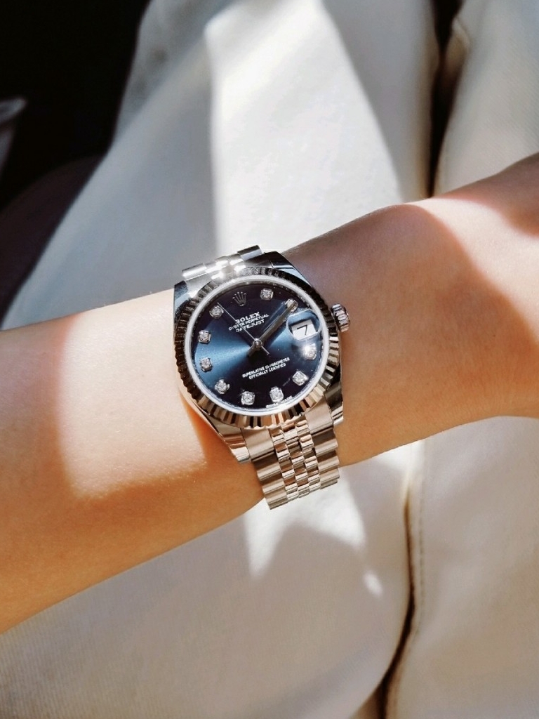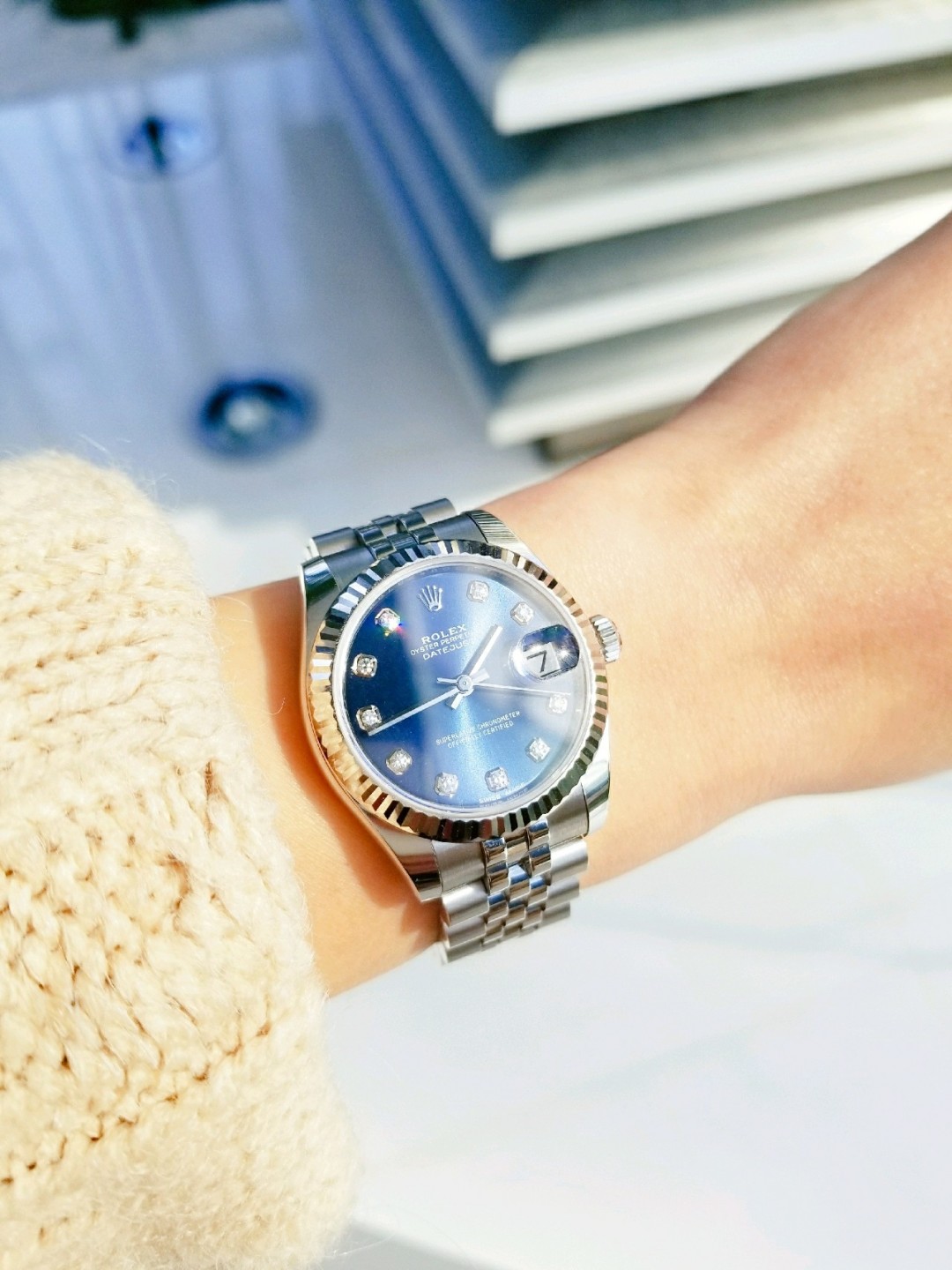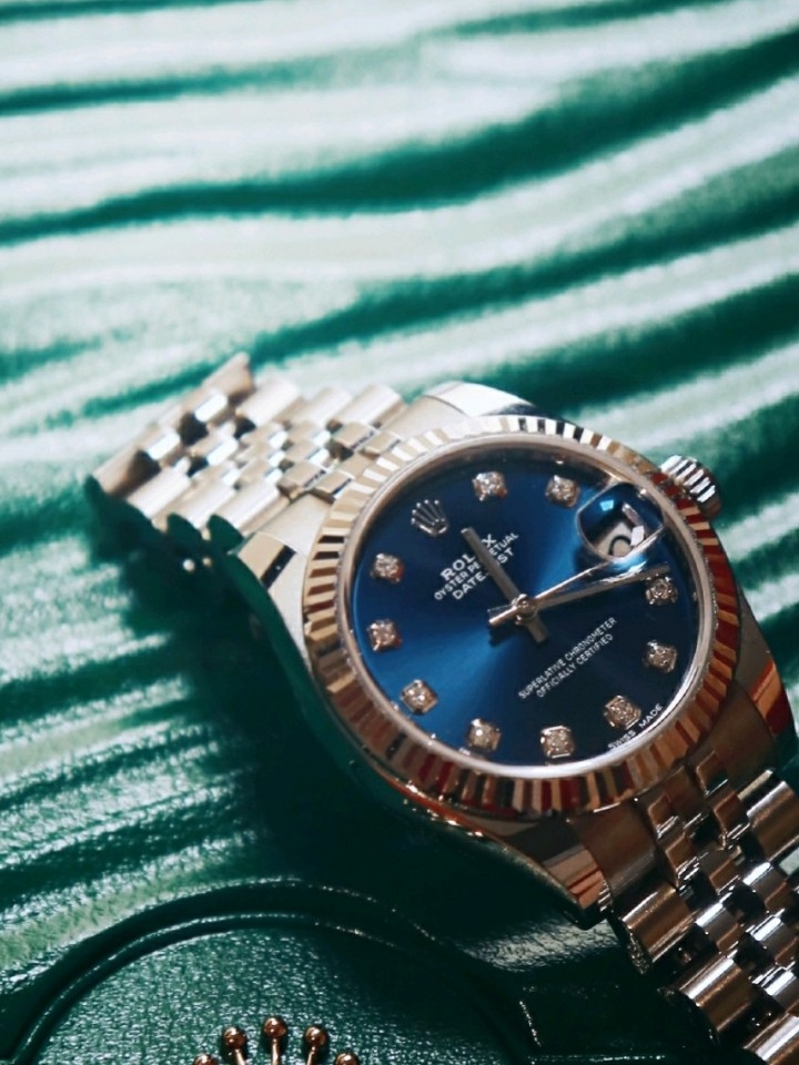 一款时尚率性的机械表。蓝色悠悠的表盘让人看了就离不开视线,璀璨施华洛世奇钻装点表盘,毫无硬气之感反而多了些许柔美