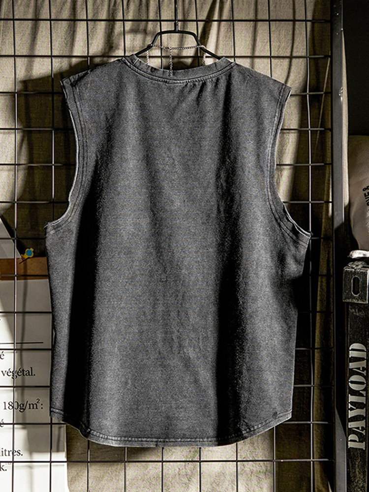 复古做旧的版型设计,带来些许文艺时尚气息,视觉表现出色。而无袖的设计,让双臂摆动更自由,舒适无束缚。衣身的口袋修饰,增添了整体的层次感。
