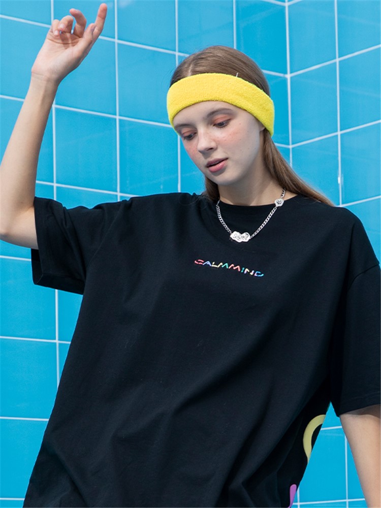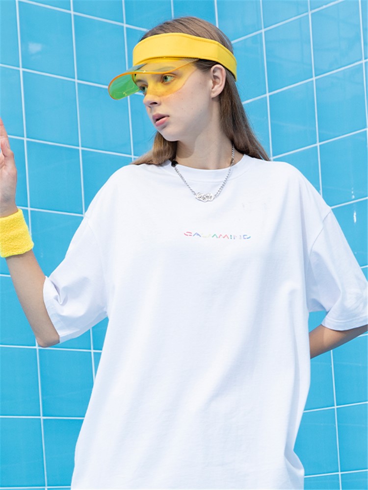 这款t恤是简约的风格,宽松的版型,时尚百搭,胸前的字母印花,很有个性,搭配牛仔裤或者短裤都很好看。