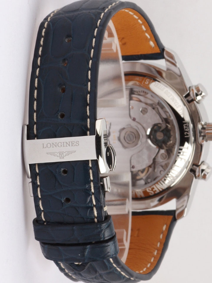 这款 Longines/浪琴手表,此腕表采用大圆型表盘设计,极富有创意,镂空后盖设计,机械机芯,高稳定特性,走时更精准耐用。