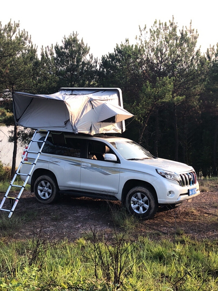 车顶帐位于车顶制高点,四周采用大面积窗户设计,通风性极好。传呼圆弧形设计,刚中带柔,尽显自然。