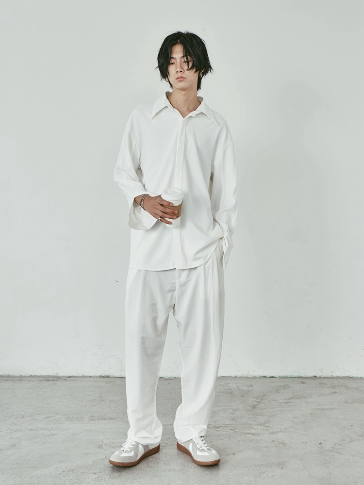 前侧双褶皱设计,能提升整条裤子的层次,立体感更强。直筒的版型,对腿型没有限制,包容性很好。
