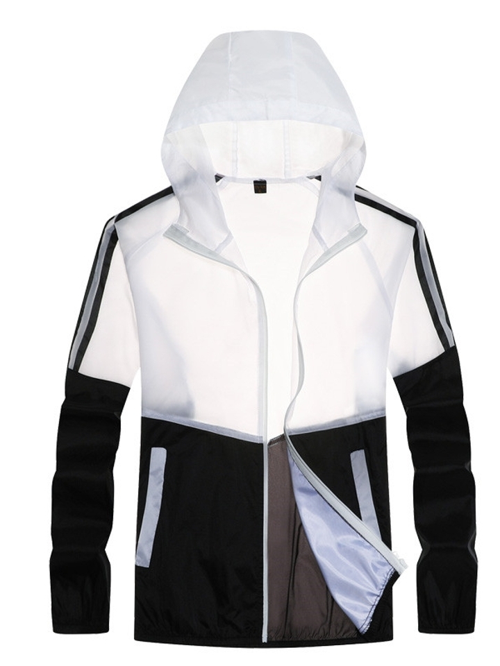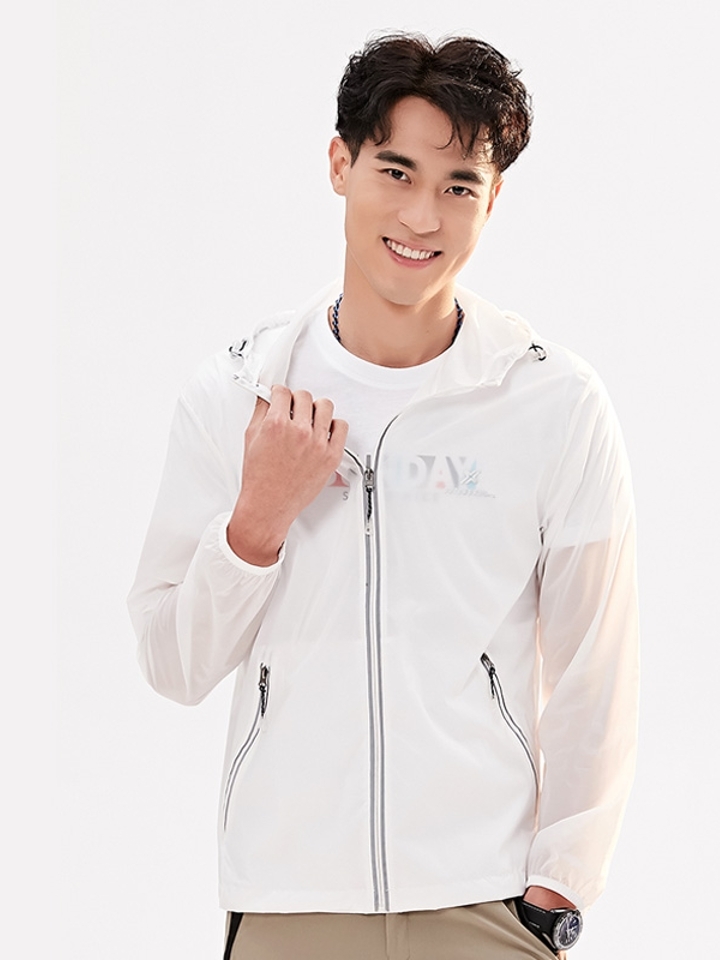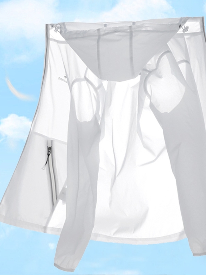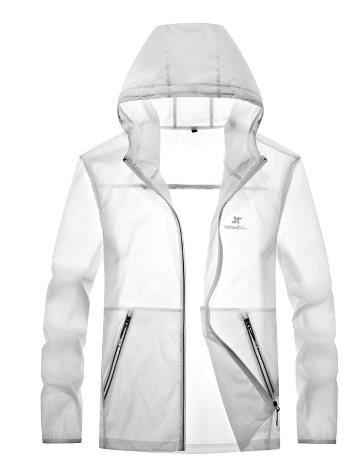 半透明防晒服。潮流时尚长袖薄款外套,穿着清新淡雅的白色明亮整个夏天,采用高级定制拉链,做工精细,连衣帽设计休闲百搭独特腰带设计