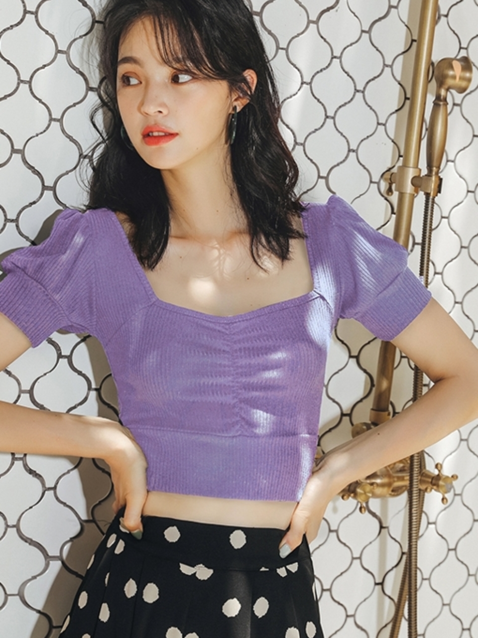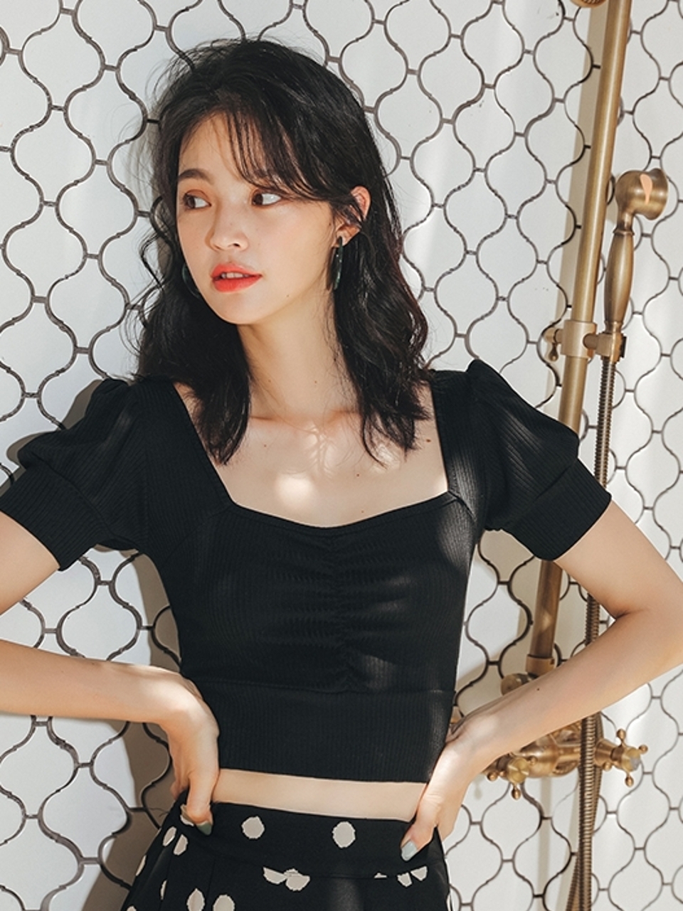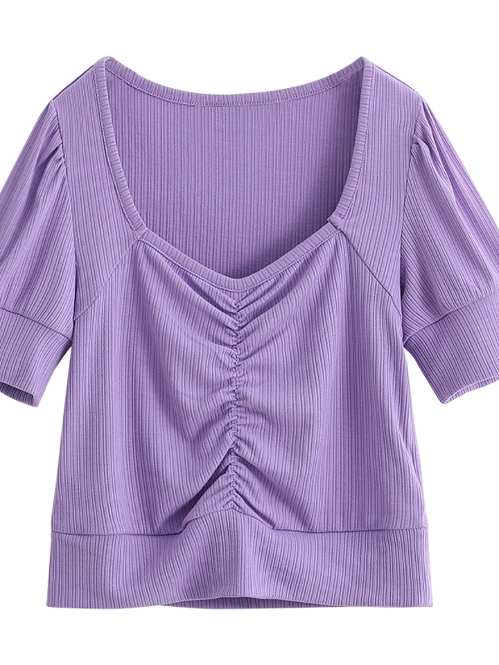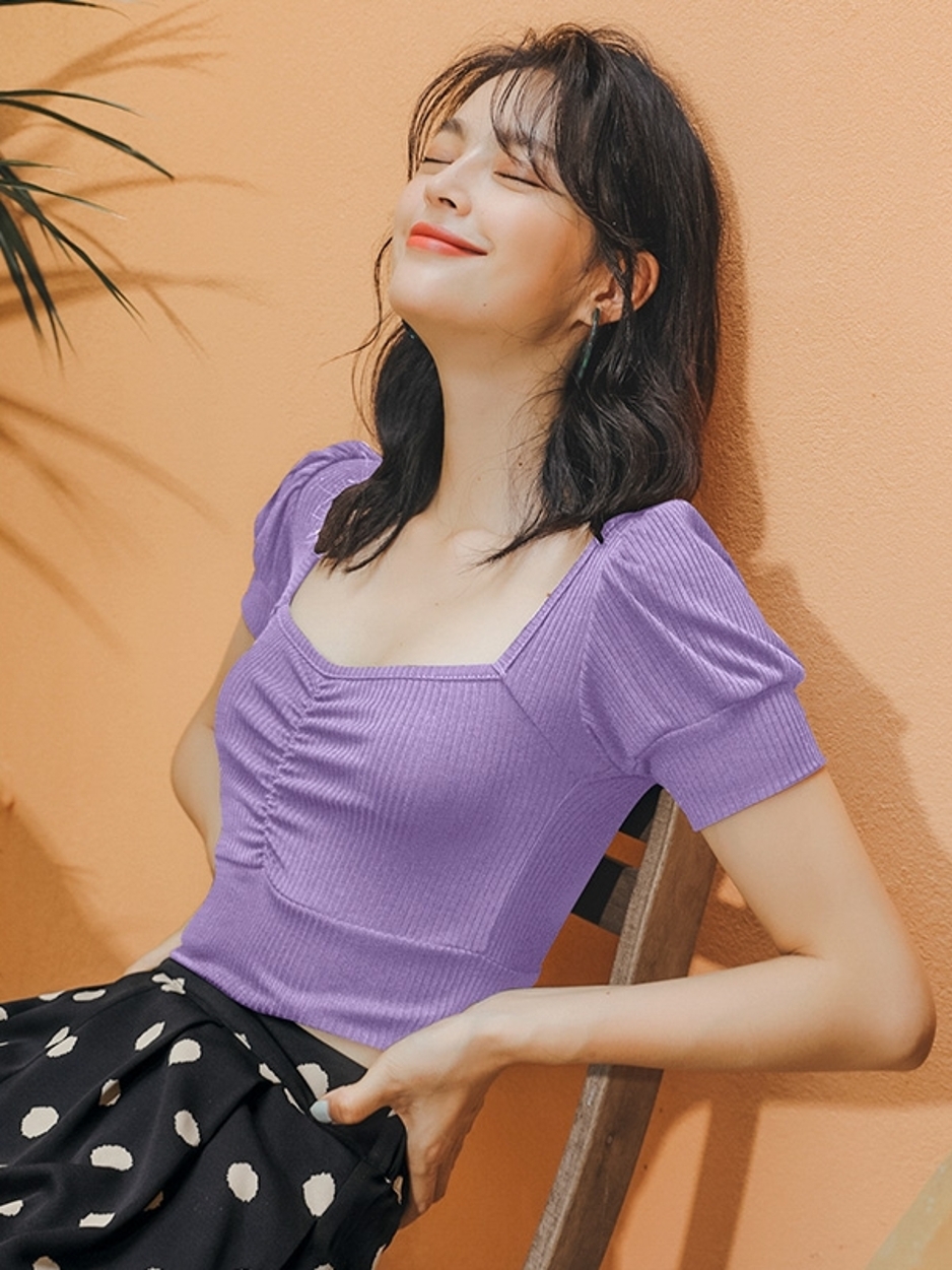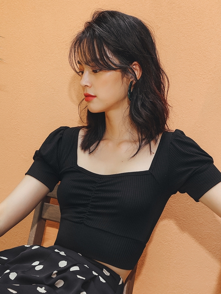 非常简单的一款短袖T恤,细条纹的设计,看起来很清爽,舒适的面料,透气又吸汗,泡泡袖的点缀,很可爱。简约基础万能百搭款,前短后长与众不同,面料柔软舒适又透气,单穿或打底都适合。