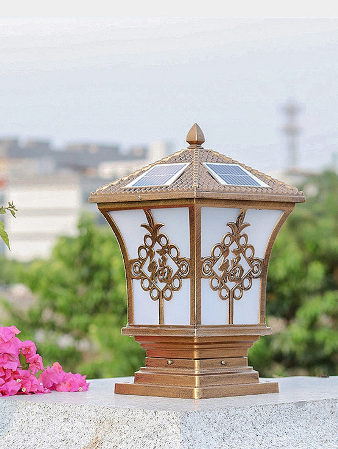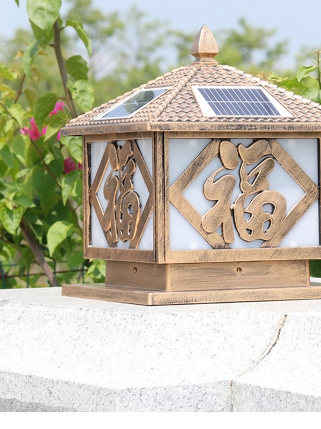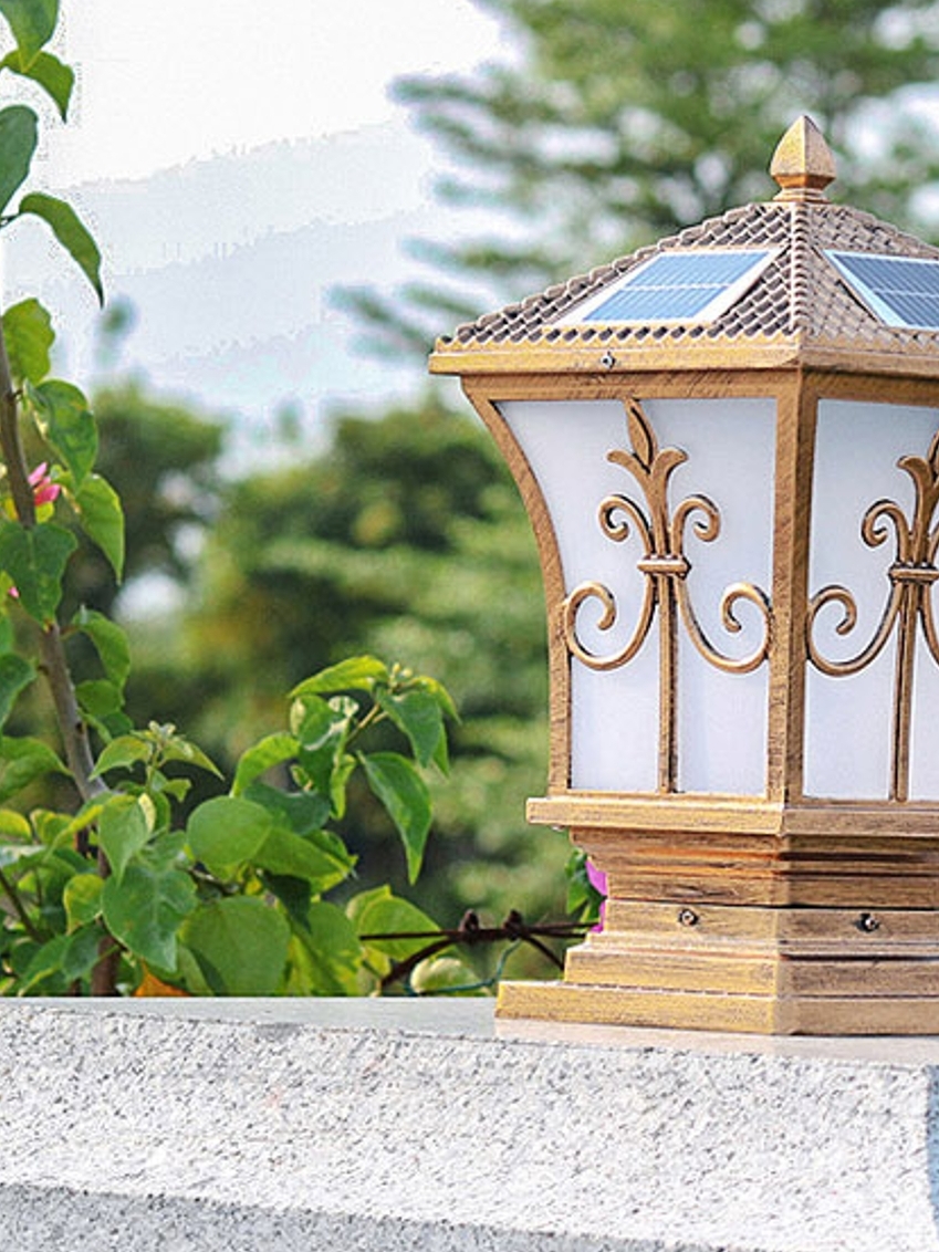 太阳能柱头灯,一款不用电的灯,进口单晶硅太阳能板,智能光感设计,透明玻璃高透光,适用于庭院照明等