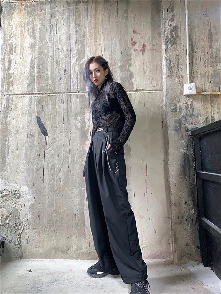 高腰的设计,拉长腿部线条,显瘦效果很好,高腰的版型,很显高挑,修身的剪裁,修饰腿部曲线,上身很有范。